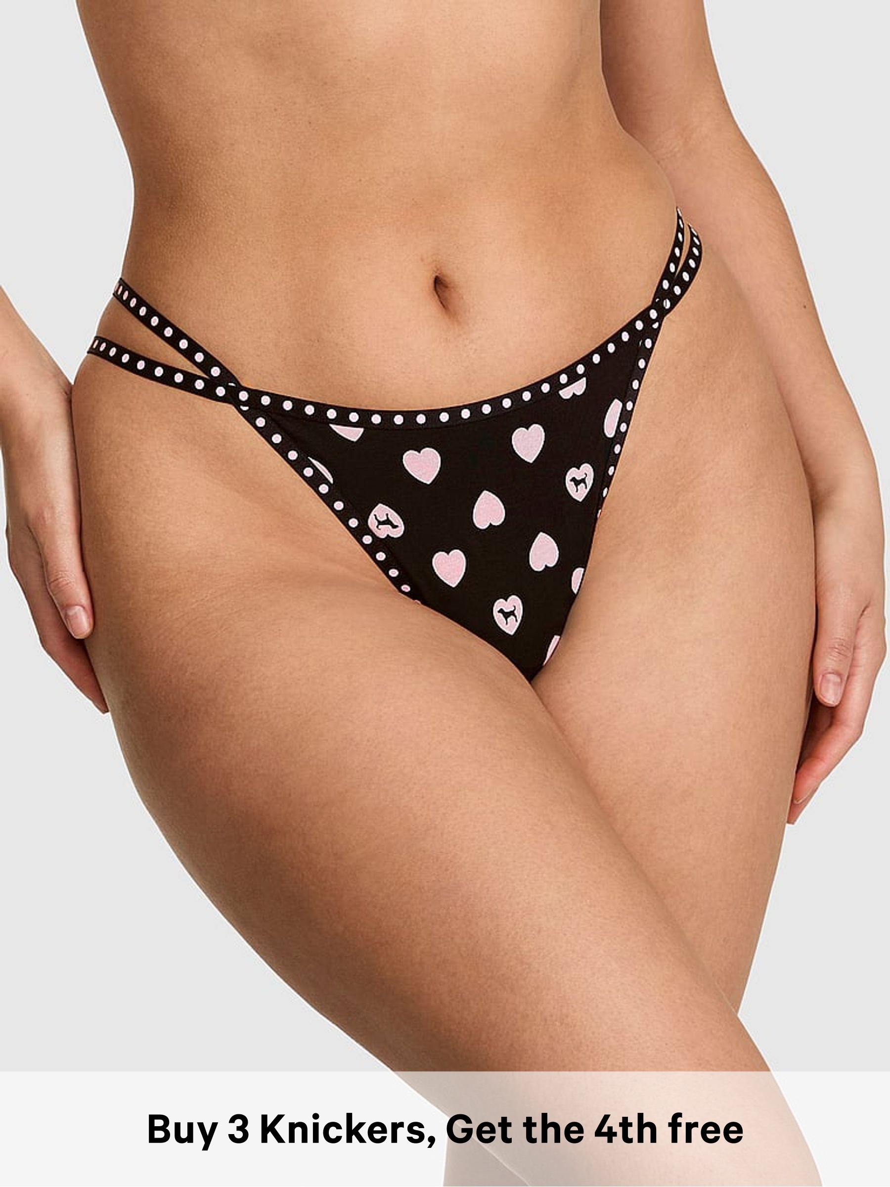 Black Heart Dog Print Thong Mini Logo Knickers