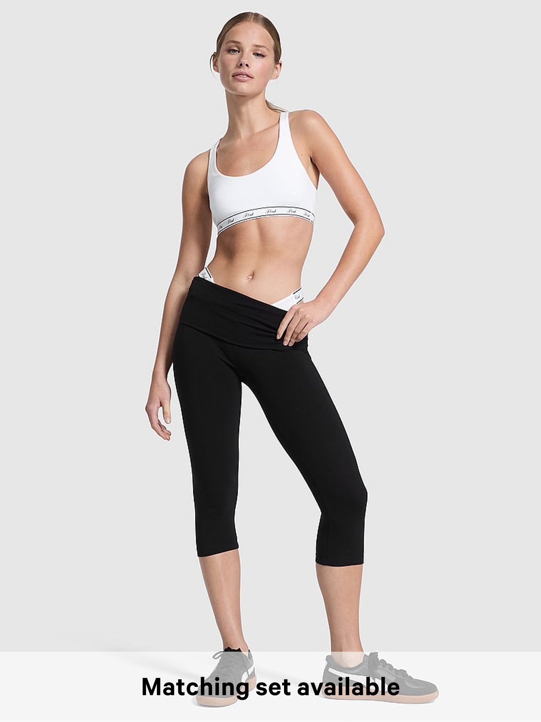 Black and Pink Logo Foldover Leggings