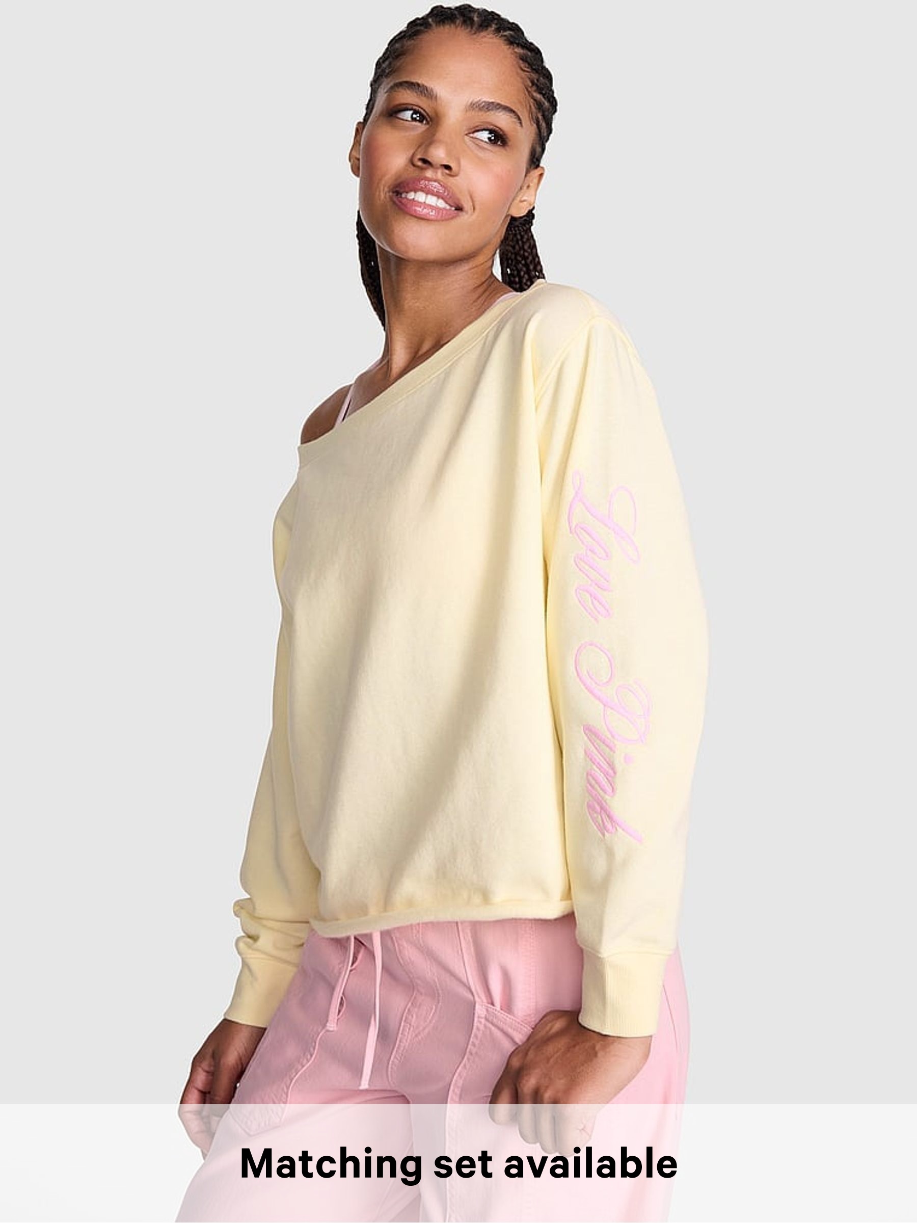 Palest Yellow Off The Shoulder Fleece Sweatshirt