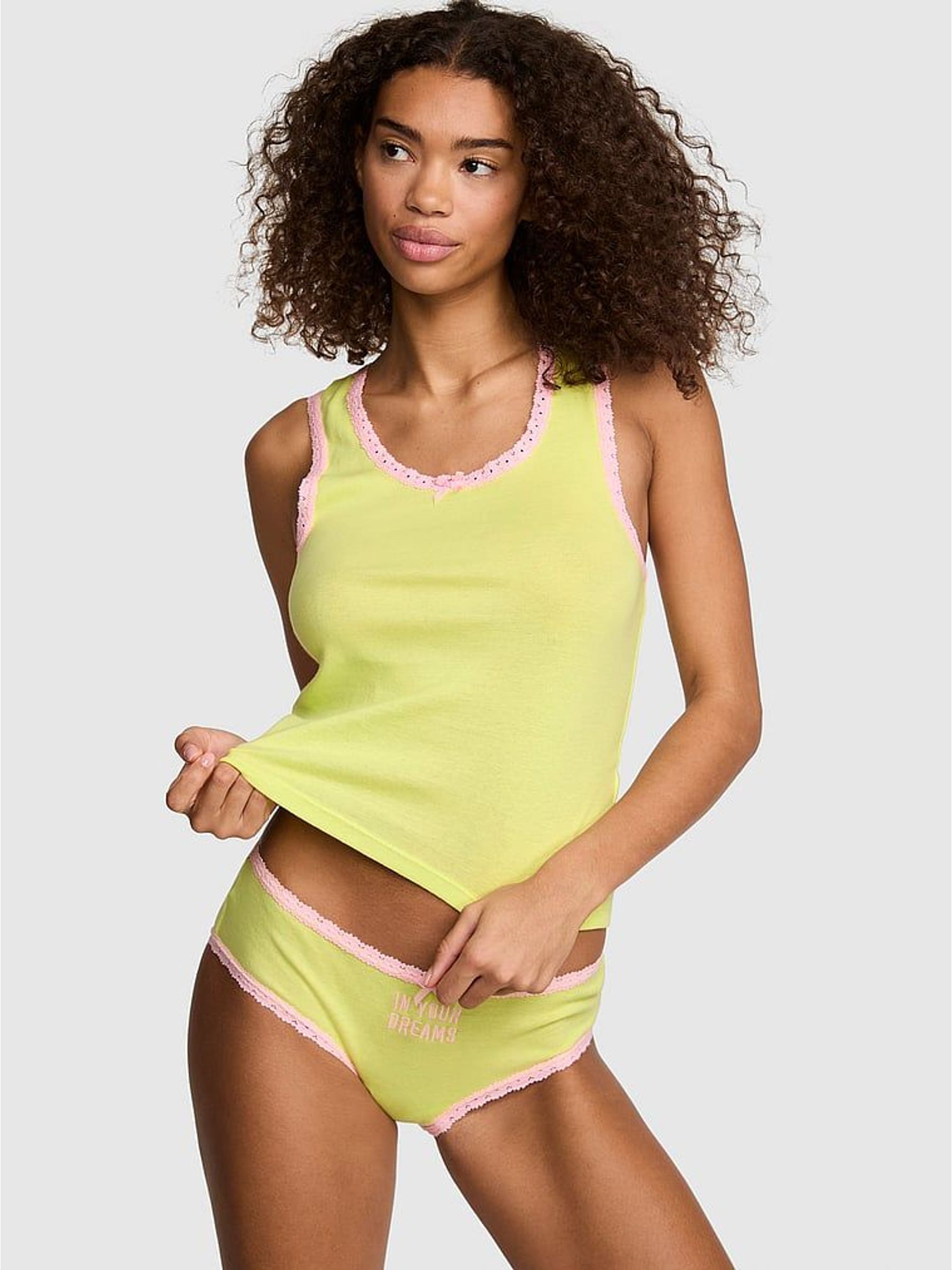 Tropical Pear Green Lace Trim Tank Top and Knicker Set