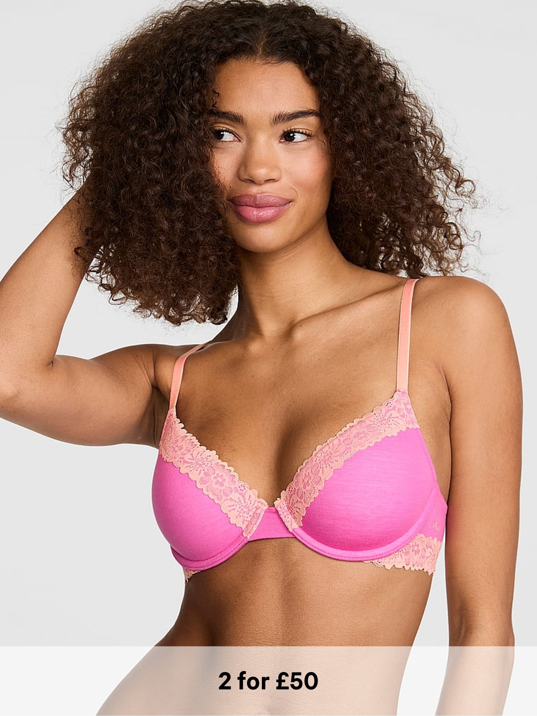 Petal Pink Lightly Lined Cotton Heather Lace Trim Bra