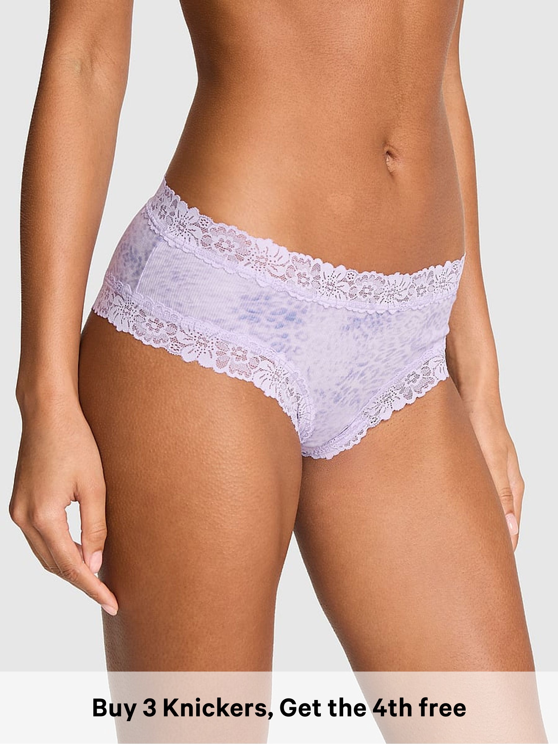 Lavender Purple Leopard Cheeky Lace Trim Rib Knickers