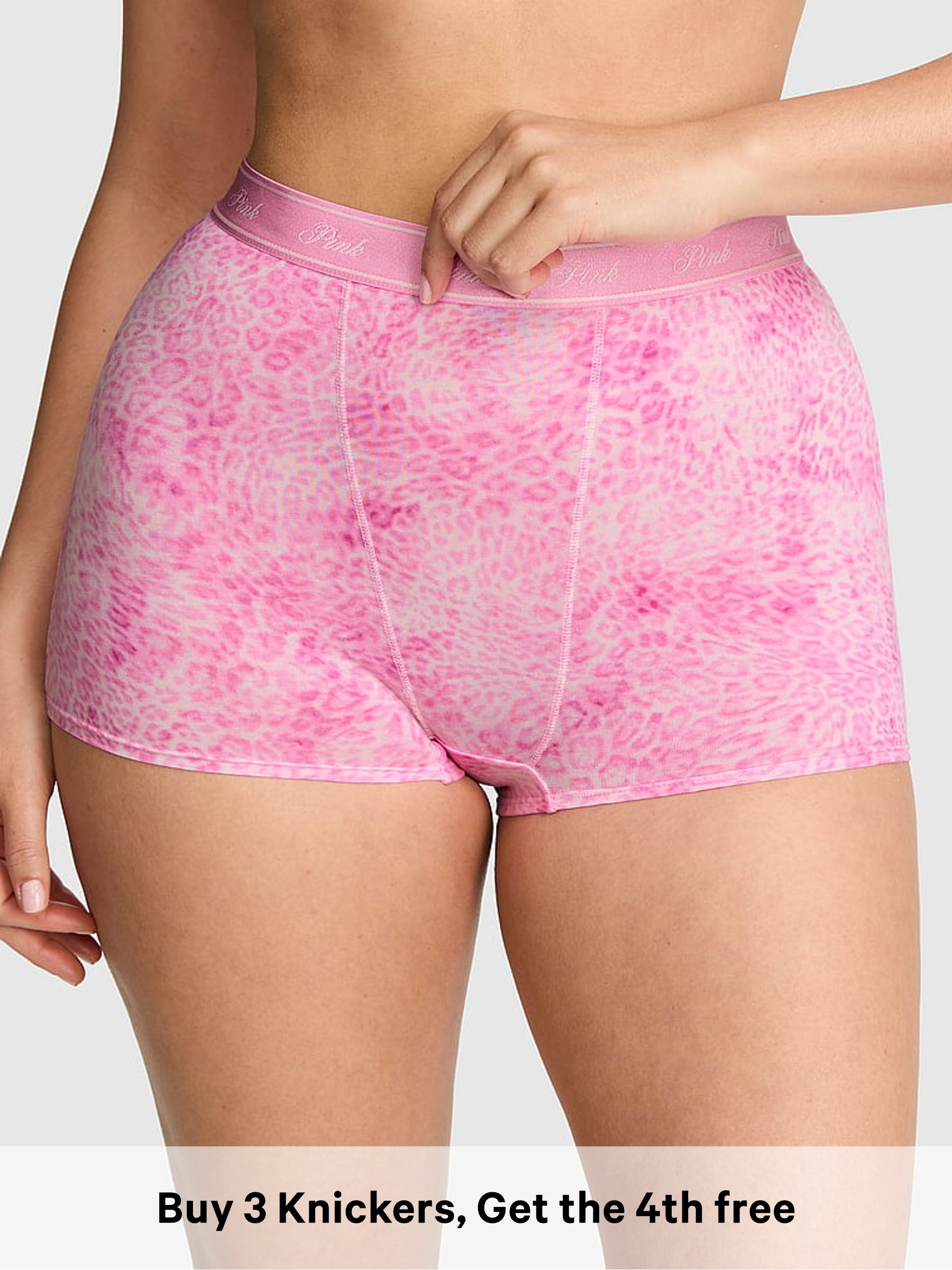 Coconut Pink Leopard Print High Waist Cotton Logo Knickers