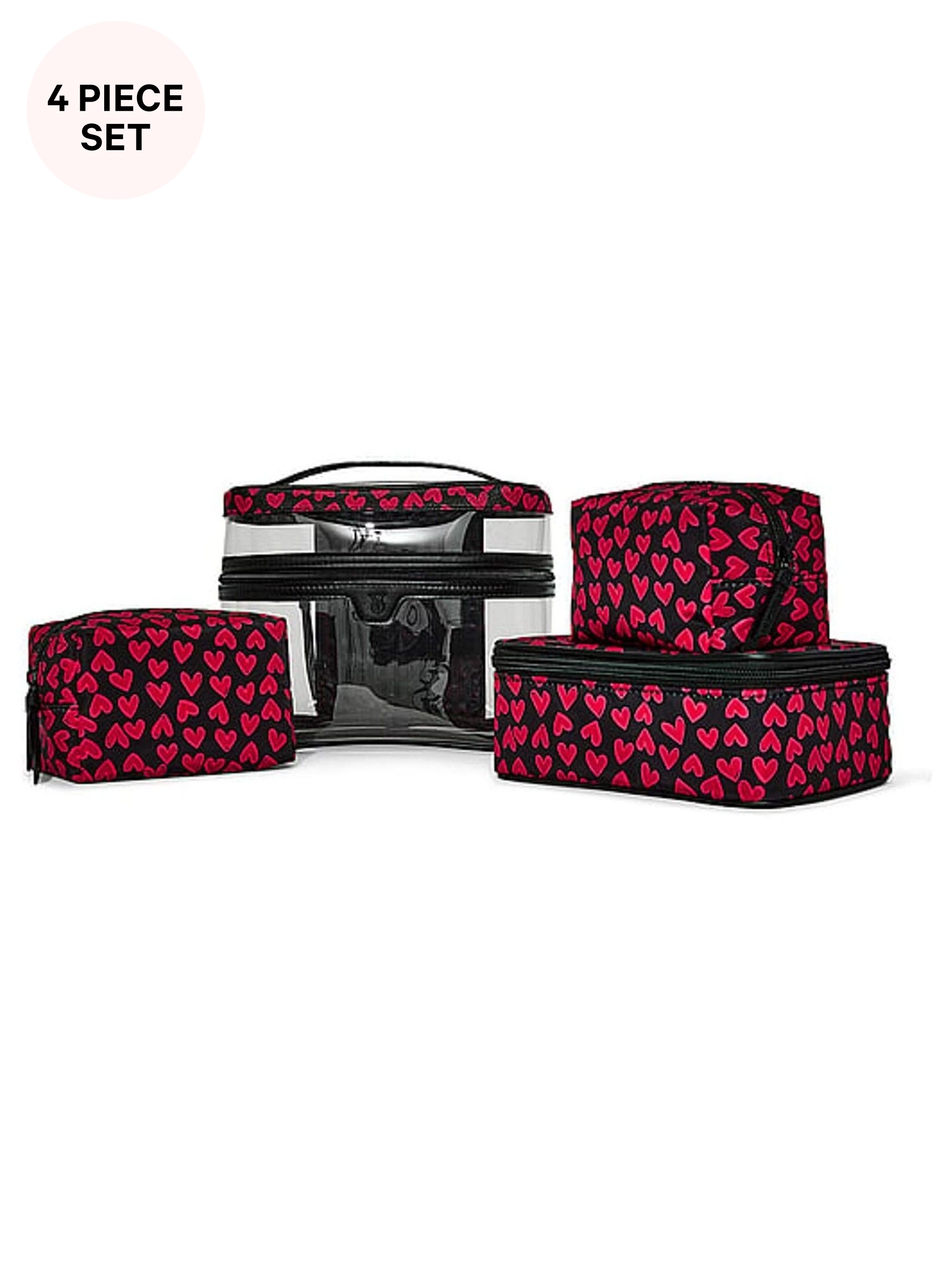 Black Heart Print 4In1 MakeUp Bag