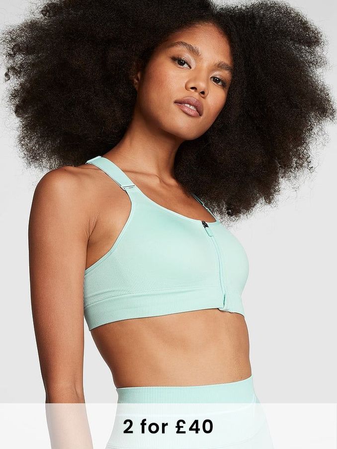 Starstruck Grey Front Close Featherweight Max High Support Sports Bra