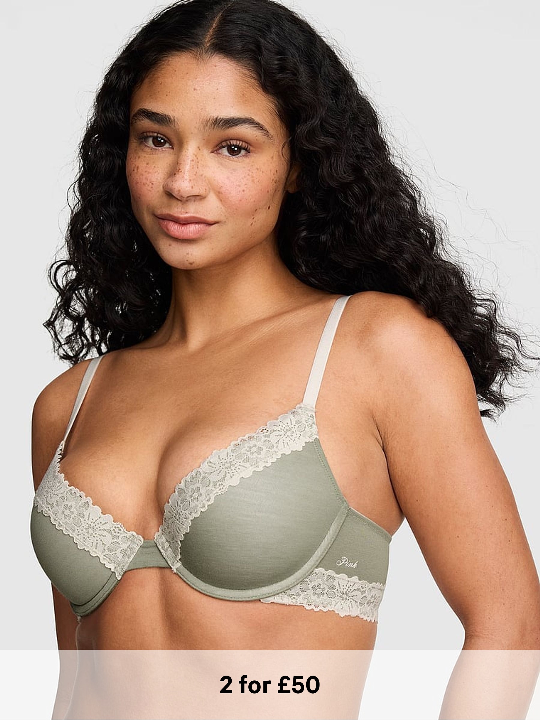Slate Green Lightly Lined Balcony Lace Smooth Cup Lightly Lined Balcony Bra