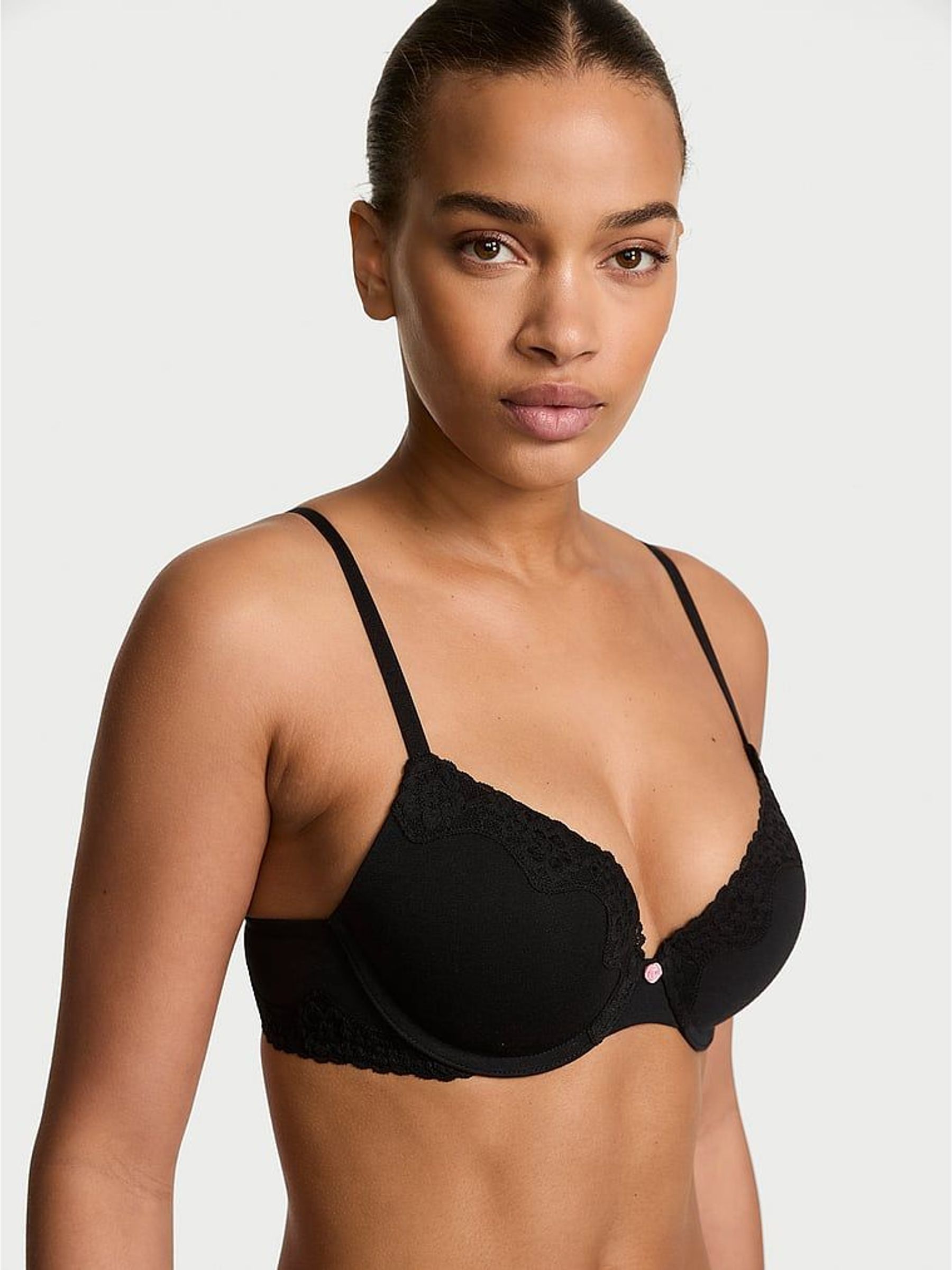 Black Full Cup Push Up Cotton Lace Trim Bra