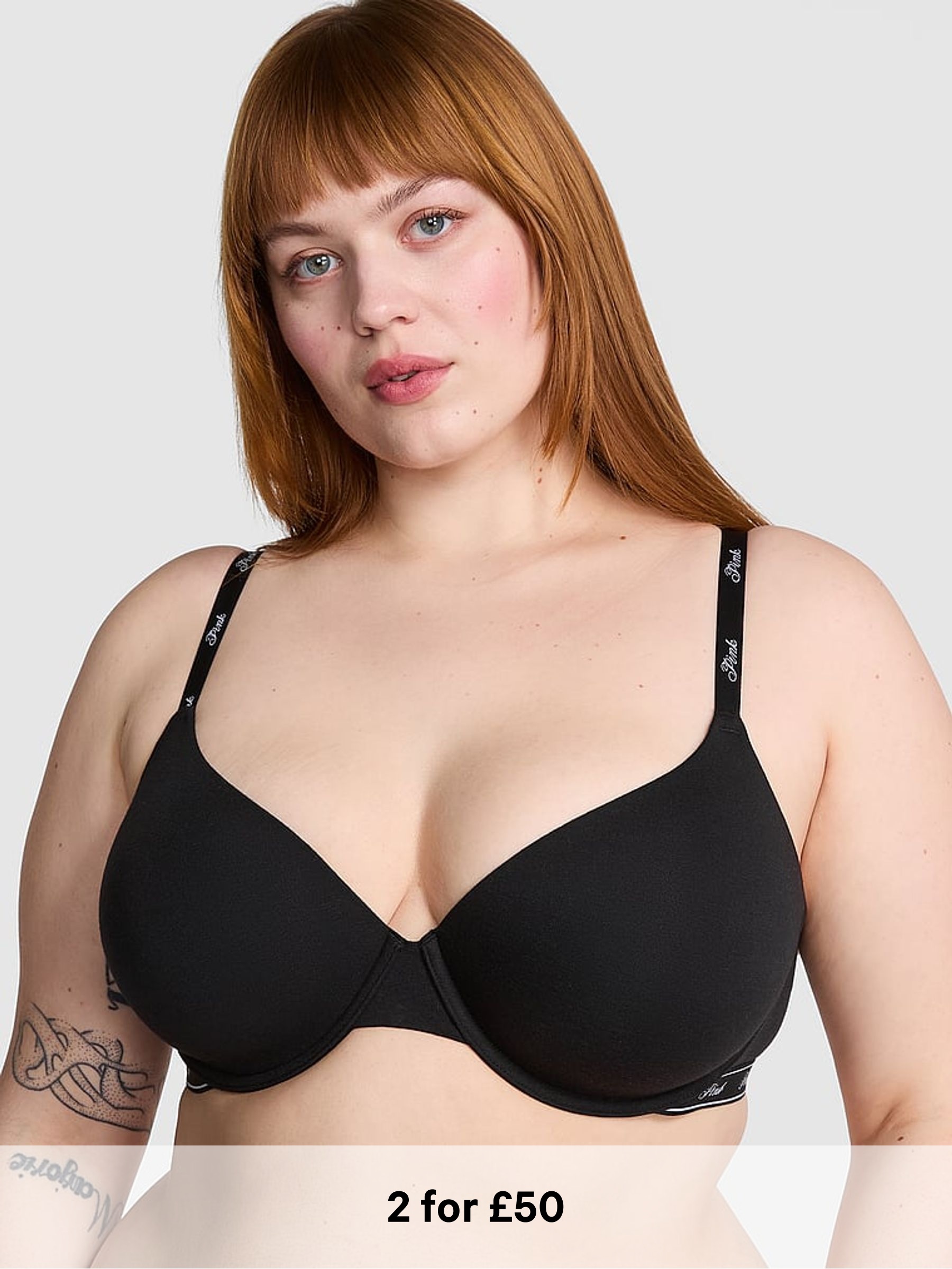 Black Strap Lightly Lined Non Wired Logo Bra