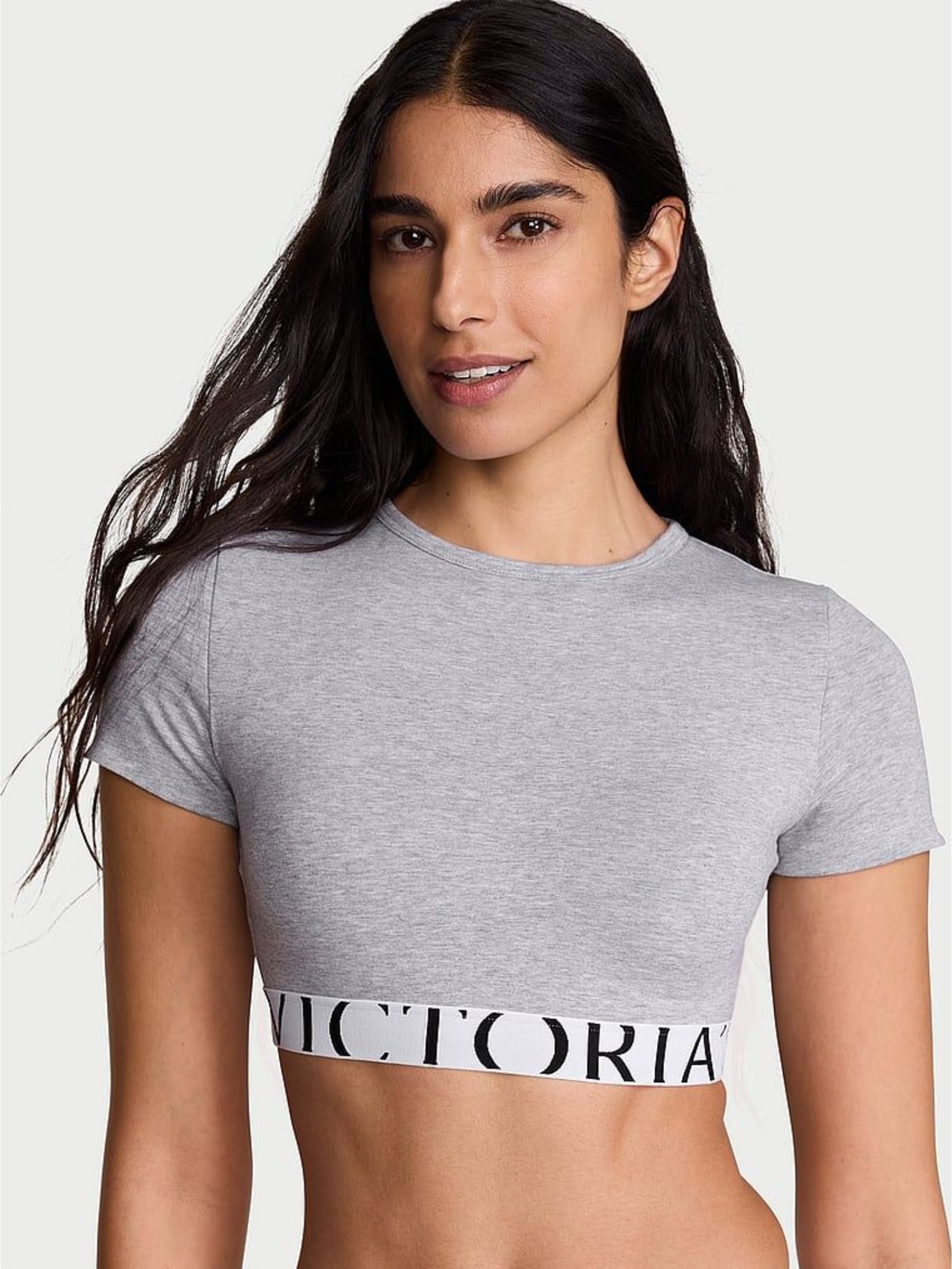 Grey Cotton Exploded Logo Short Sleeve Bralette Top