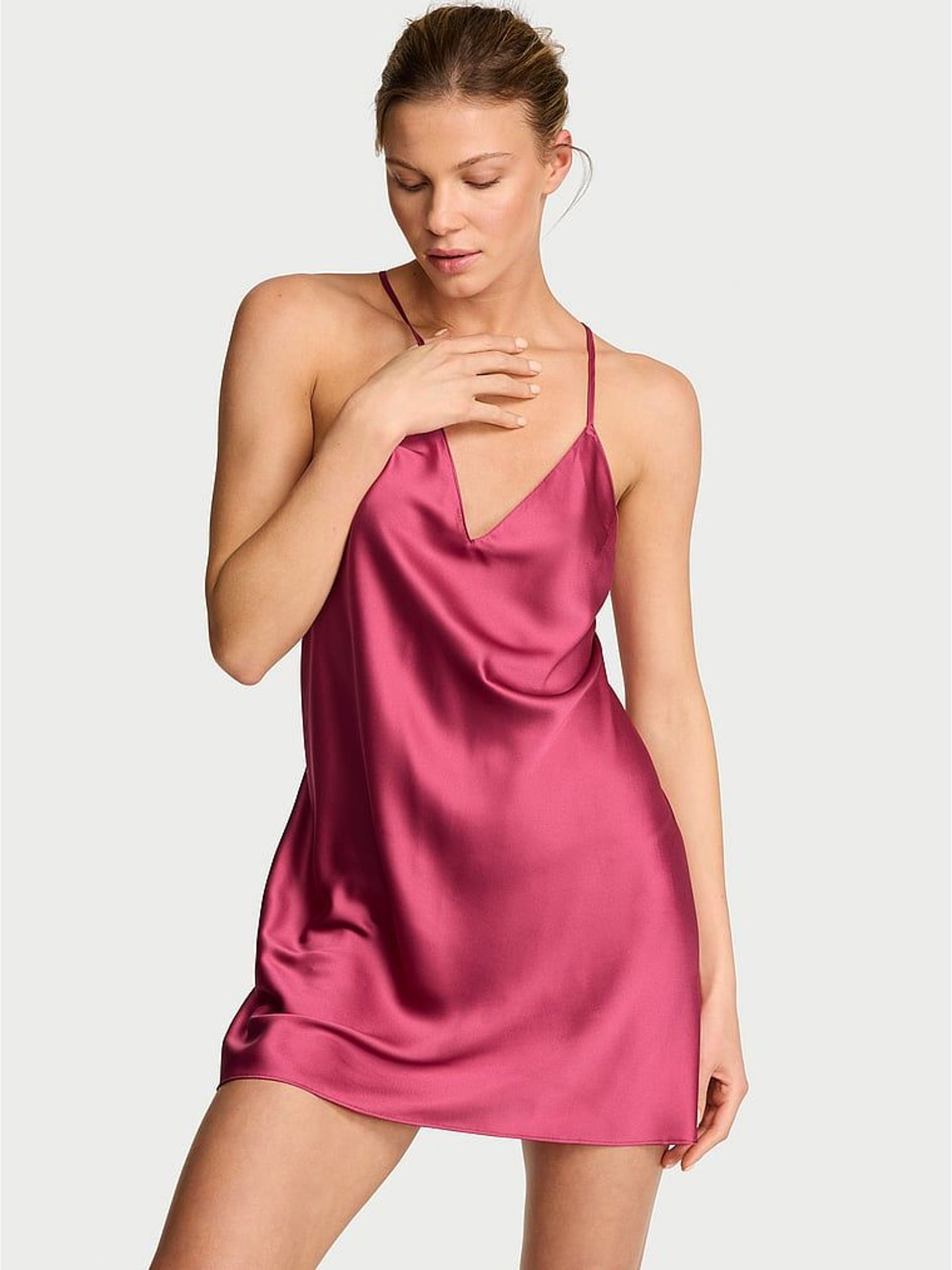 Rose Garden Pink Shine Satin Strappy Back Slip