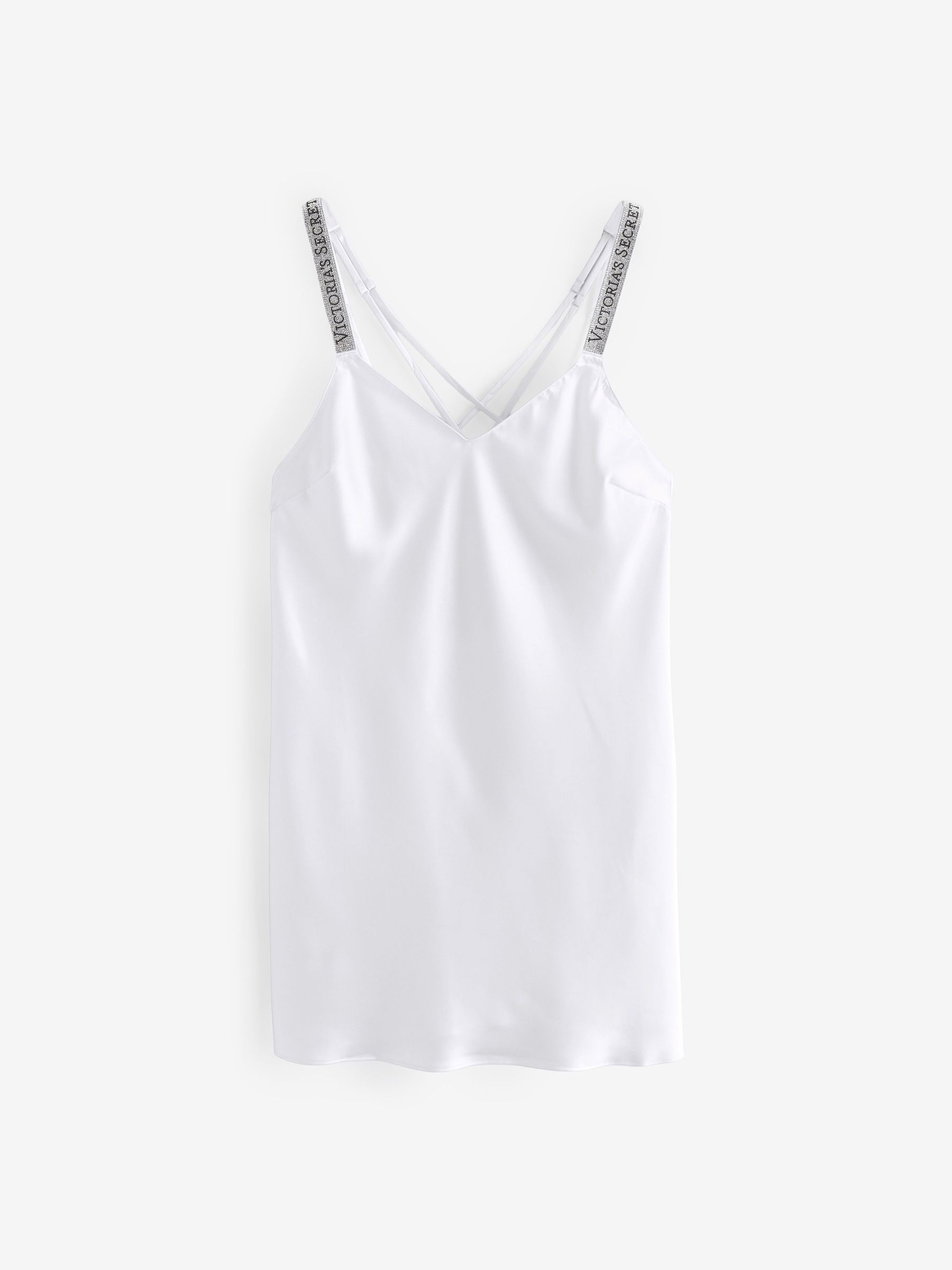 White Scattered Shine Satin Strappy Back Slip