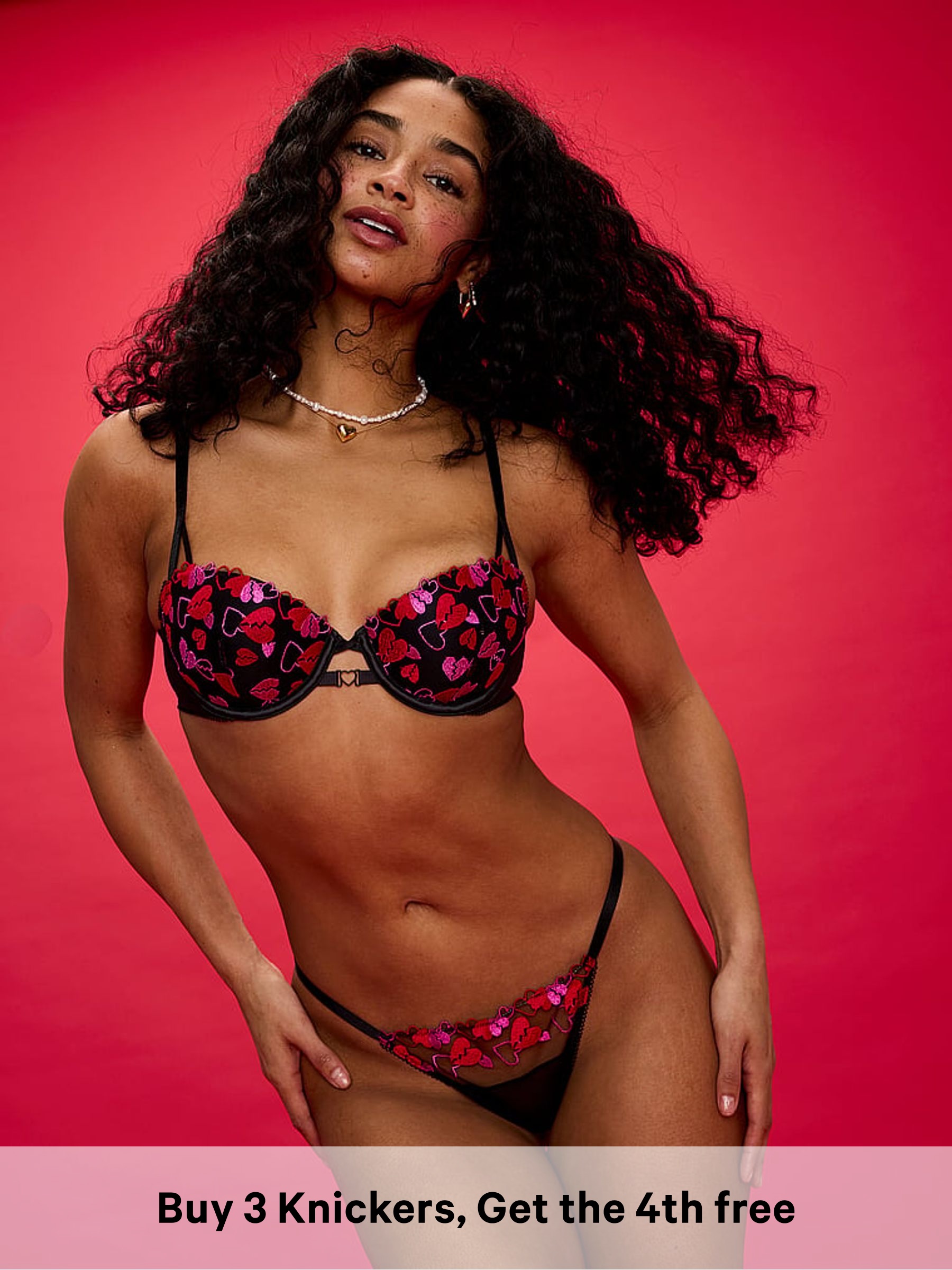 Heartbreaker Black Mini Scoop Thong Embroidery Knickers