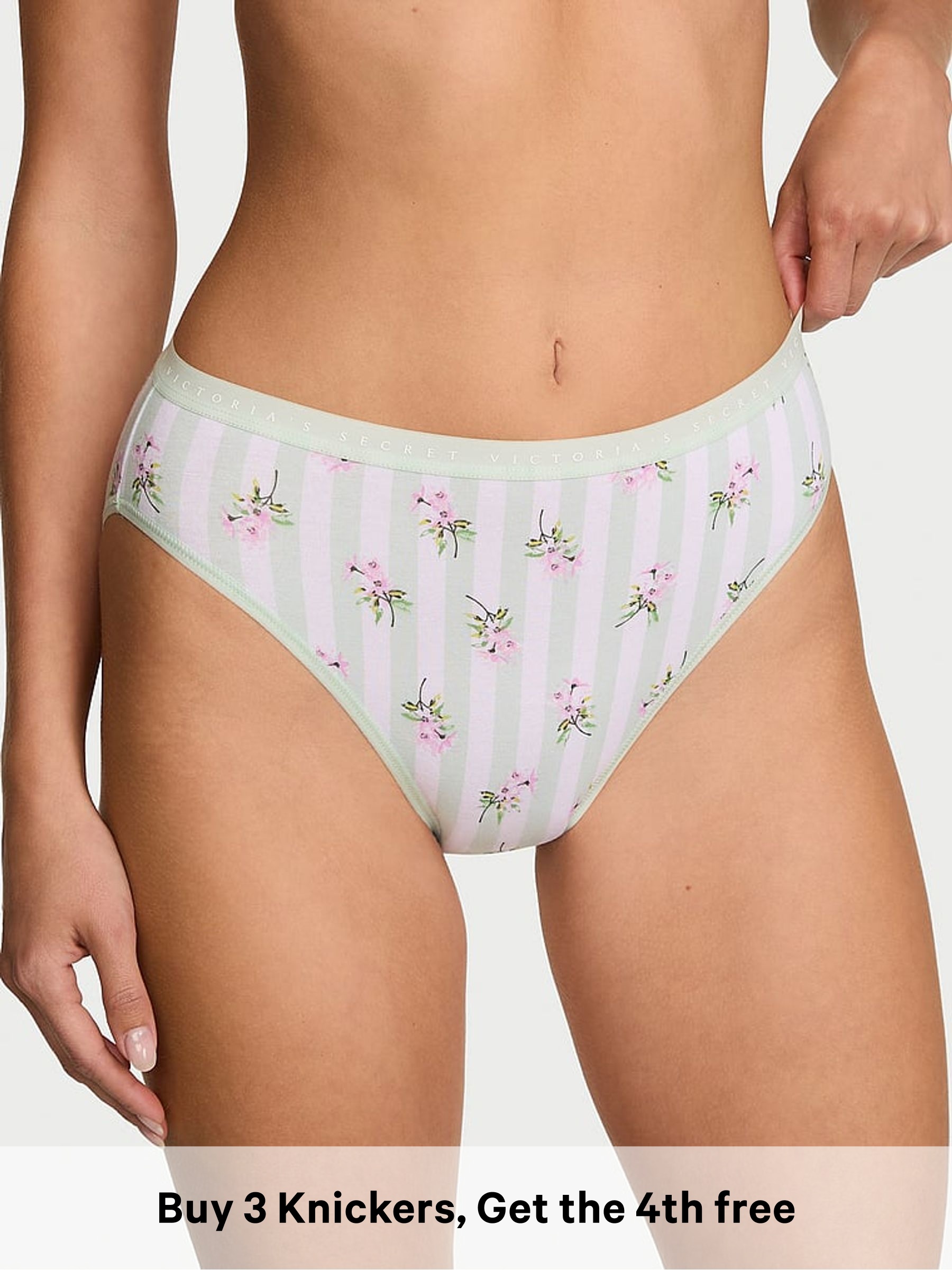 Mint Green Floral Stripe Brief Knickers