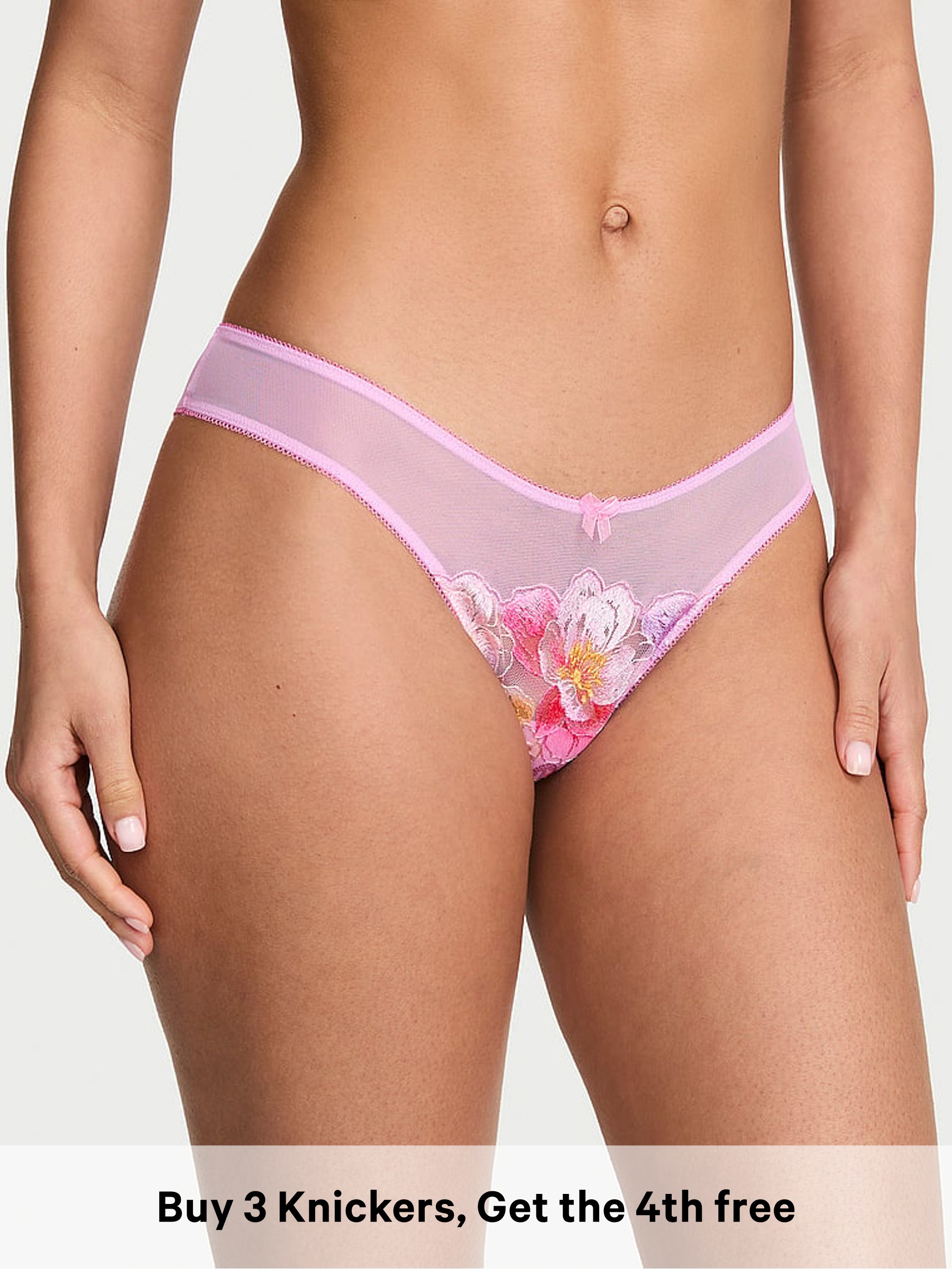 Watercolour Pink Thong Embroidery Knickers