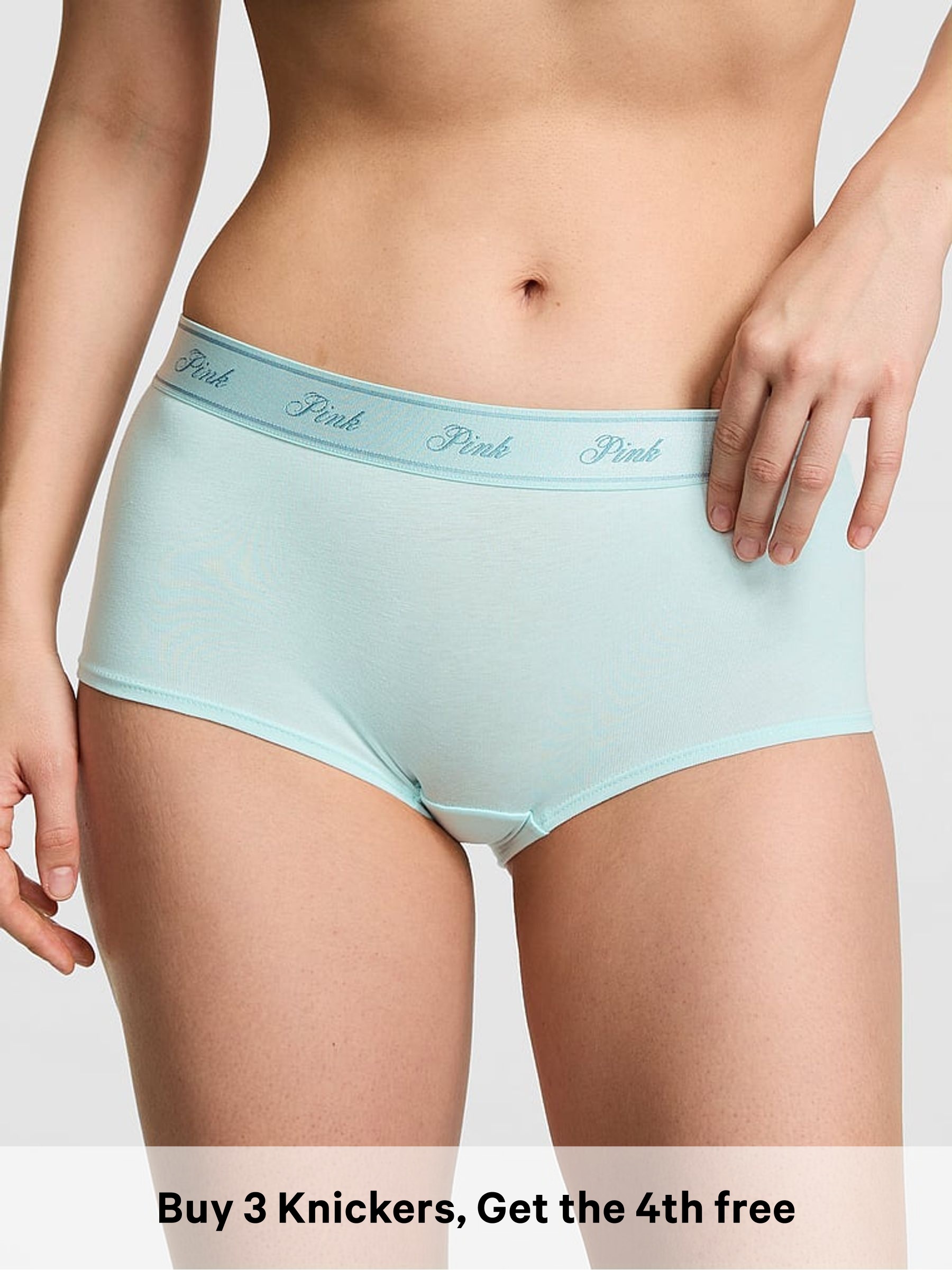 Spray Blue Boyshort Cotton Logo Knickers