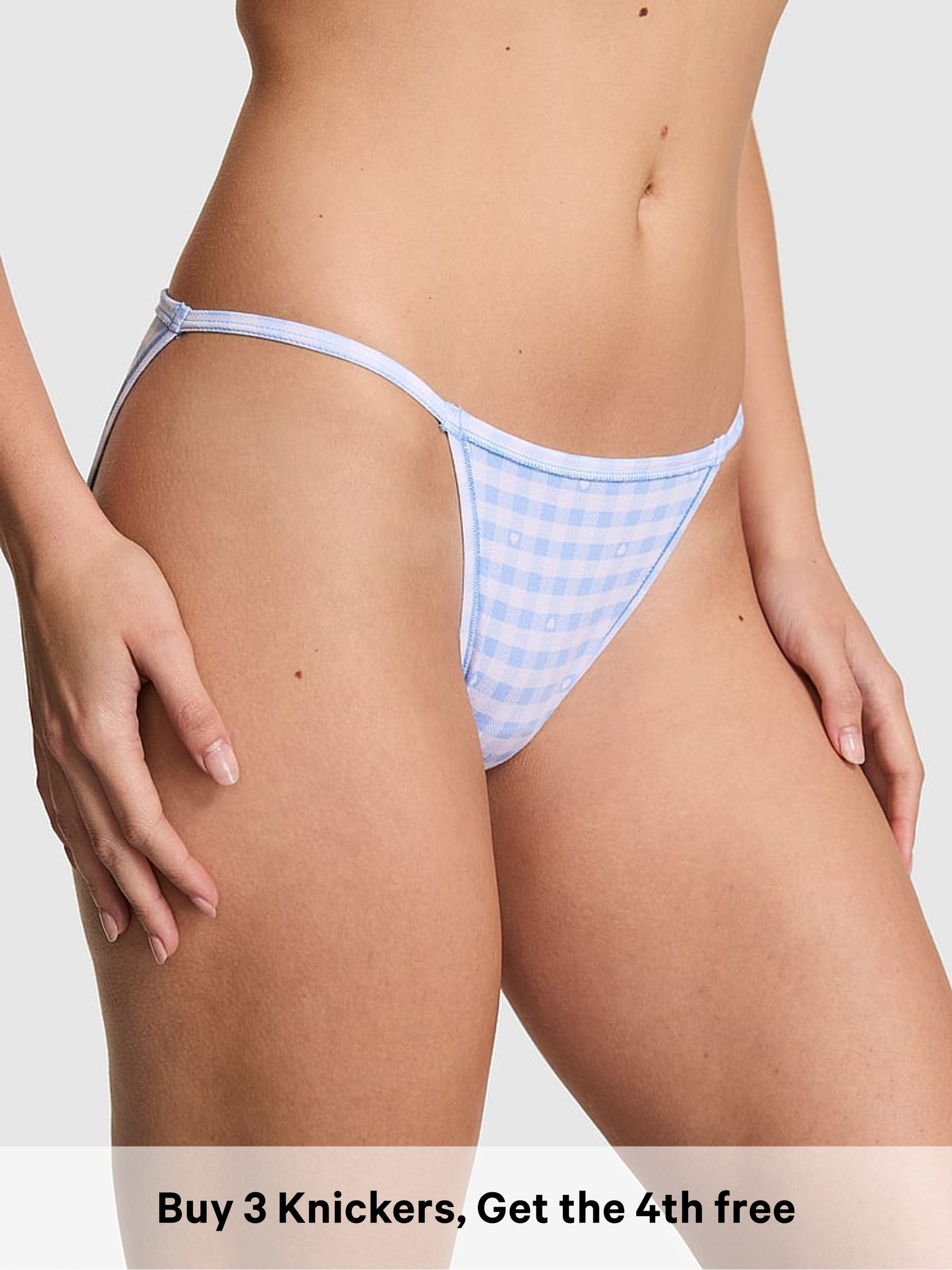 Blue Gingham Print Bikini Cotton Knickers