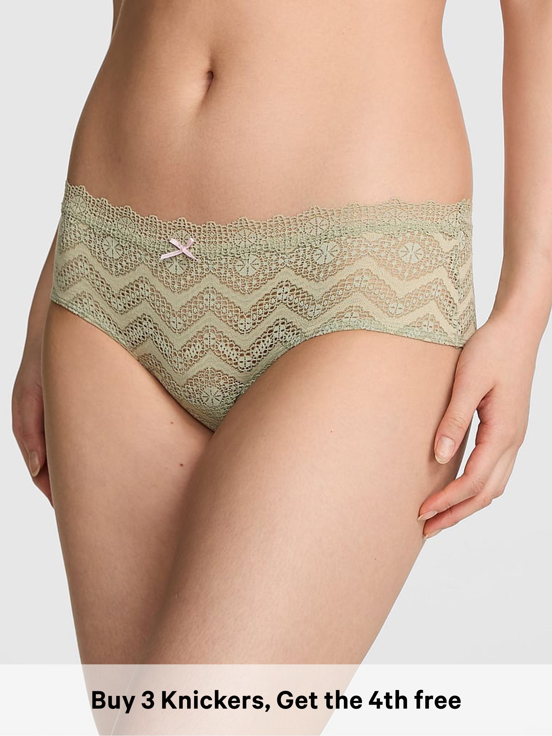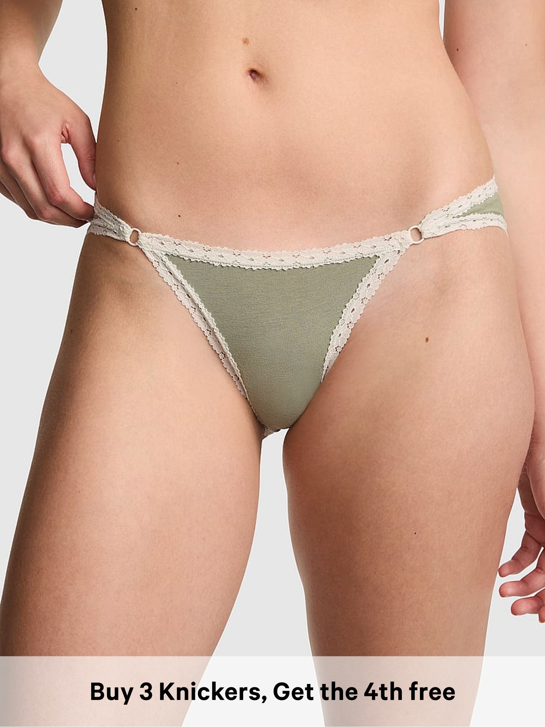 Wild Green 'Wish Me Luck' Cheeky Cotton Lace Trim Knickers