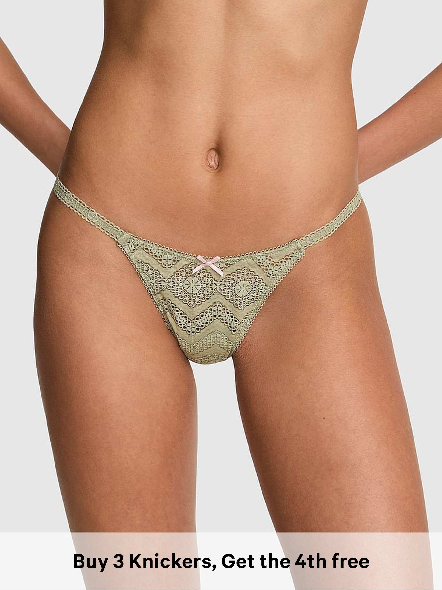 Slate Green Mini Scoop Thong Crochet Lace Knickers