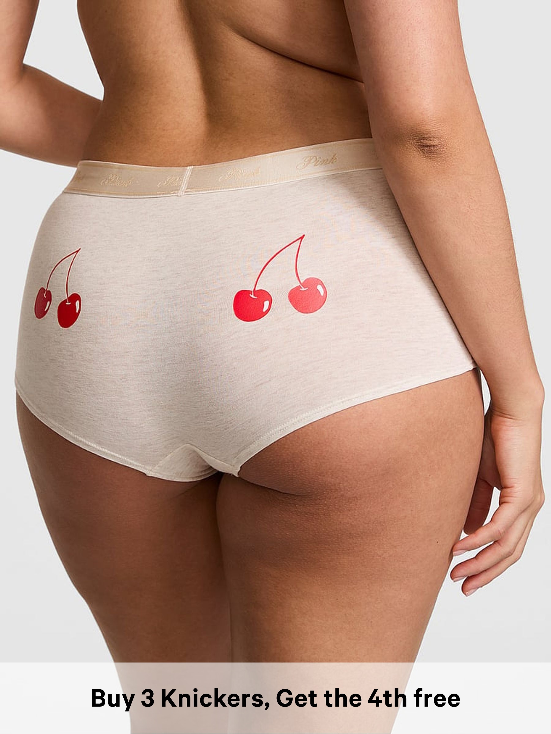 Natural Heather Nude Cherry Boyshort Cotton Logo Knickers