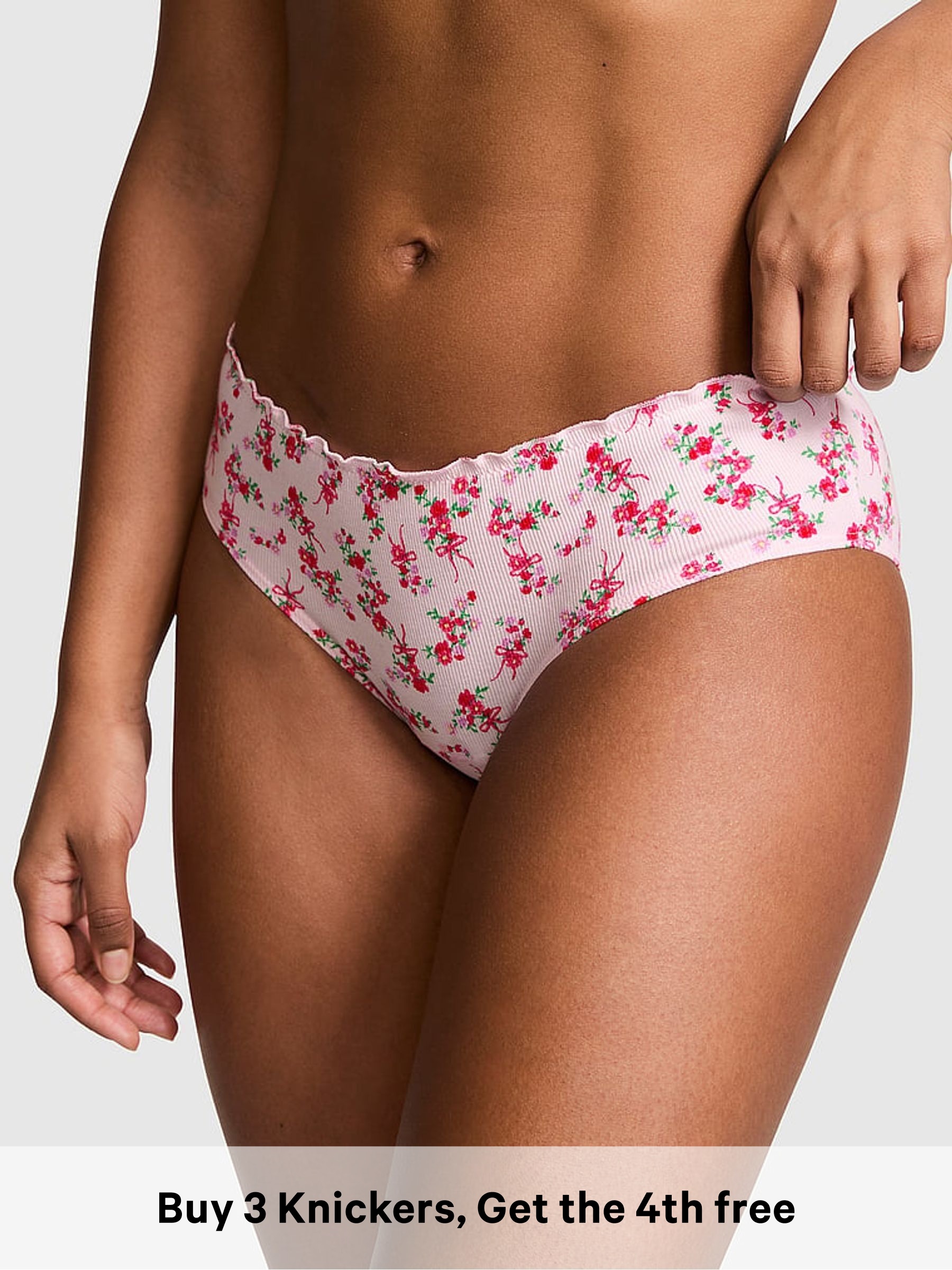 Pink Tulip Floral Print Cheeky Tie Detail Knickers