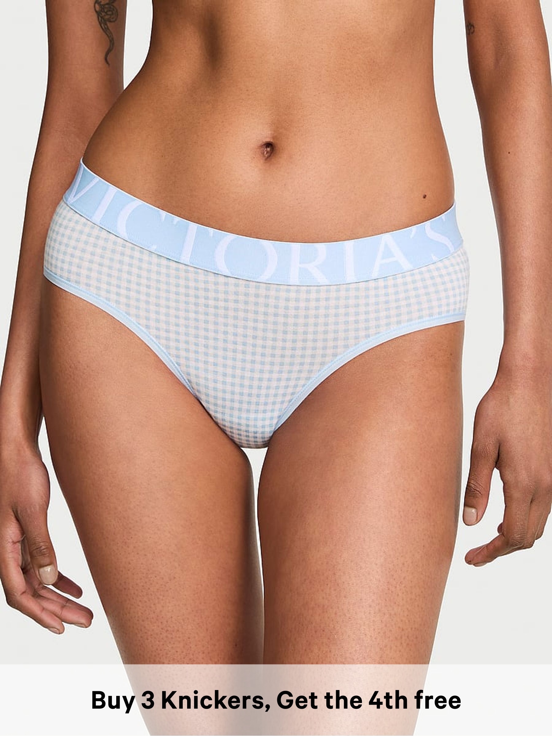 Linen Blue Gingham Hipster Exploded Logo Knickers