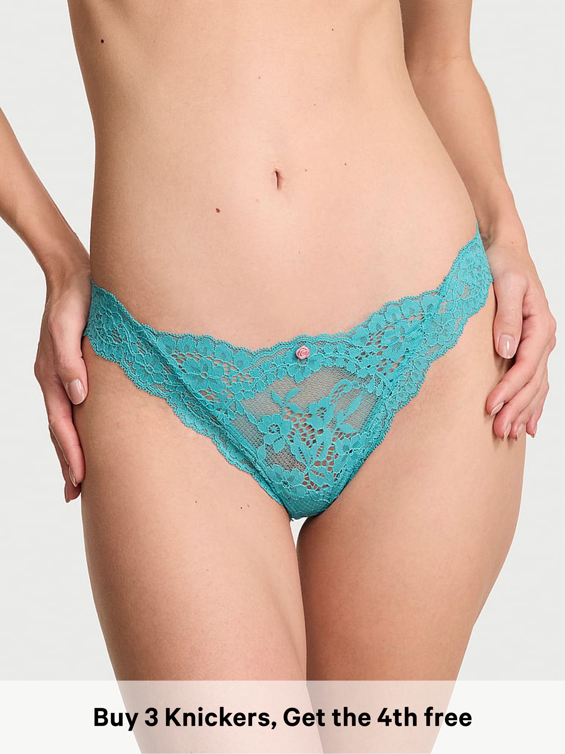 Teal Haze Blue Lace Trim Thong Knickers