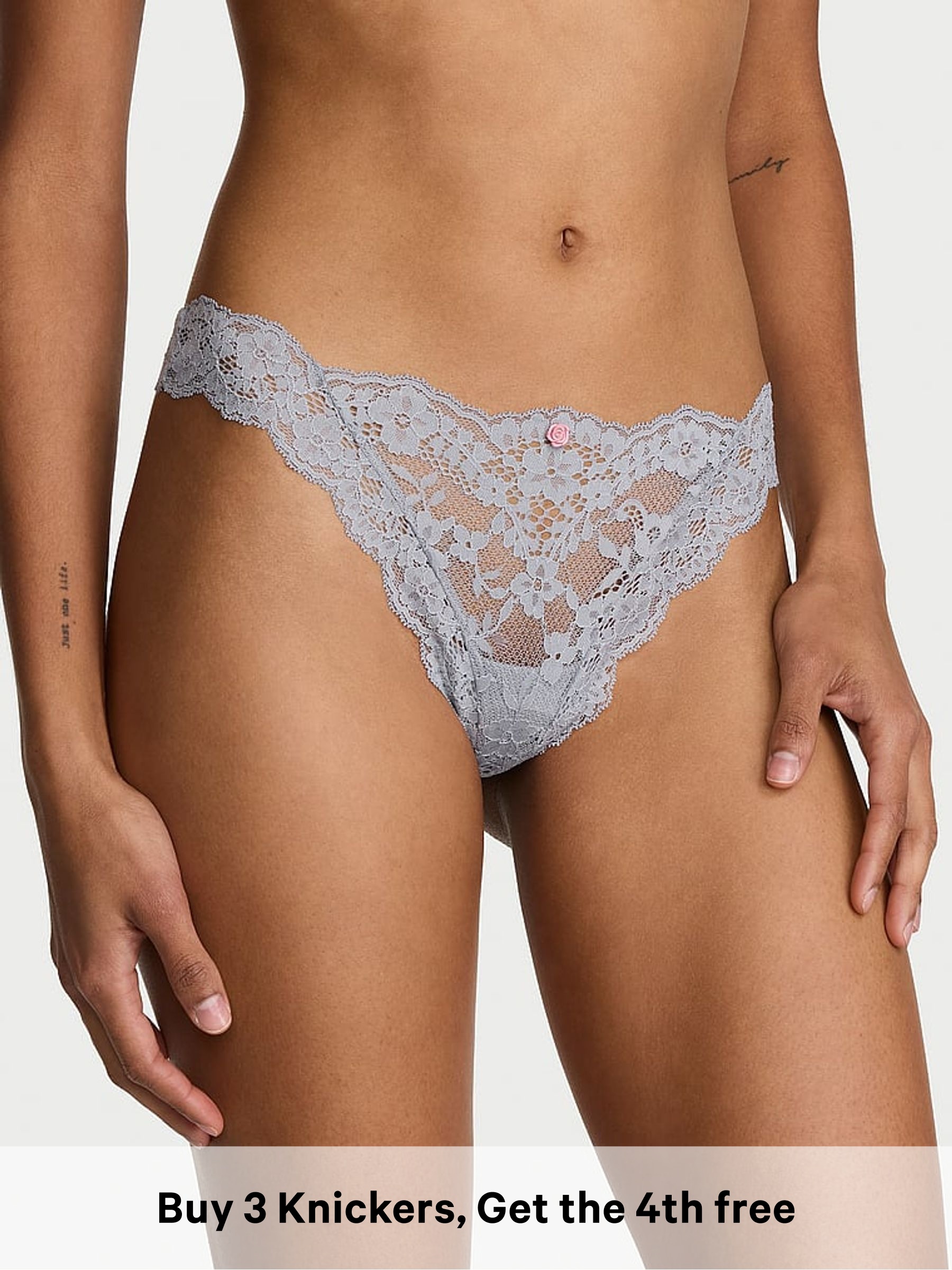 Heather Grey Bikini Lace Trim Knickers