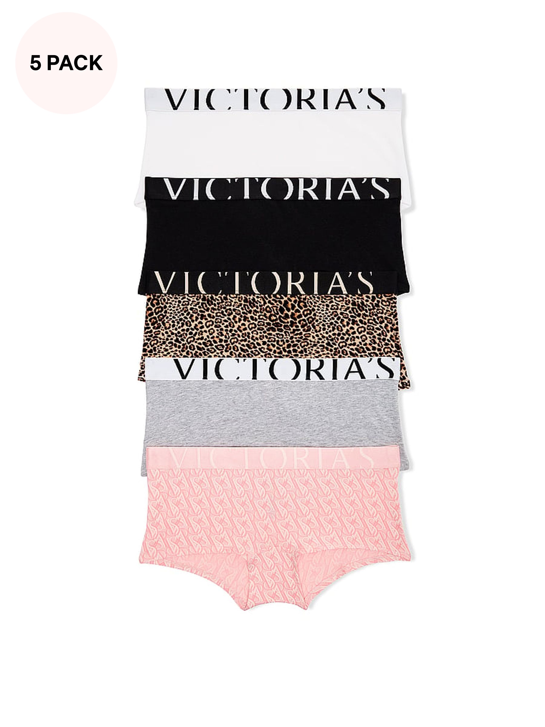 Black/Leopard/Grey/Pink/White Short Exploded Logo Knickers 5 Pack