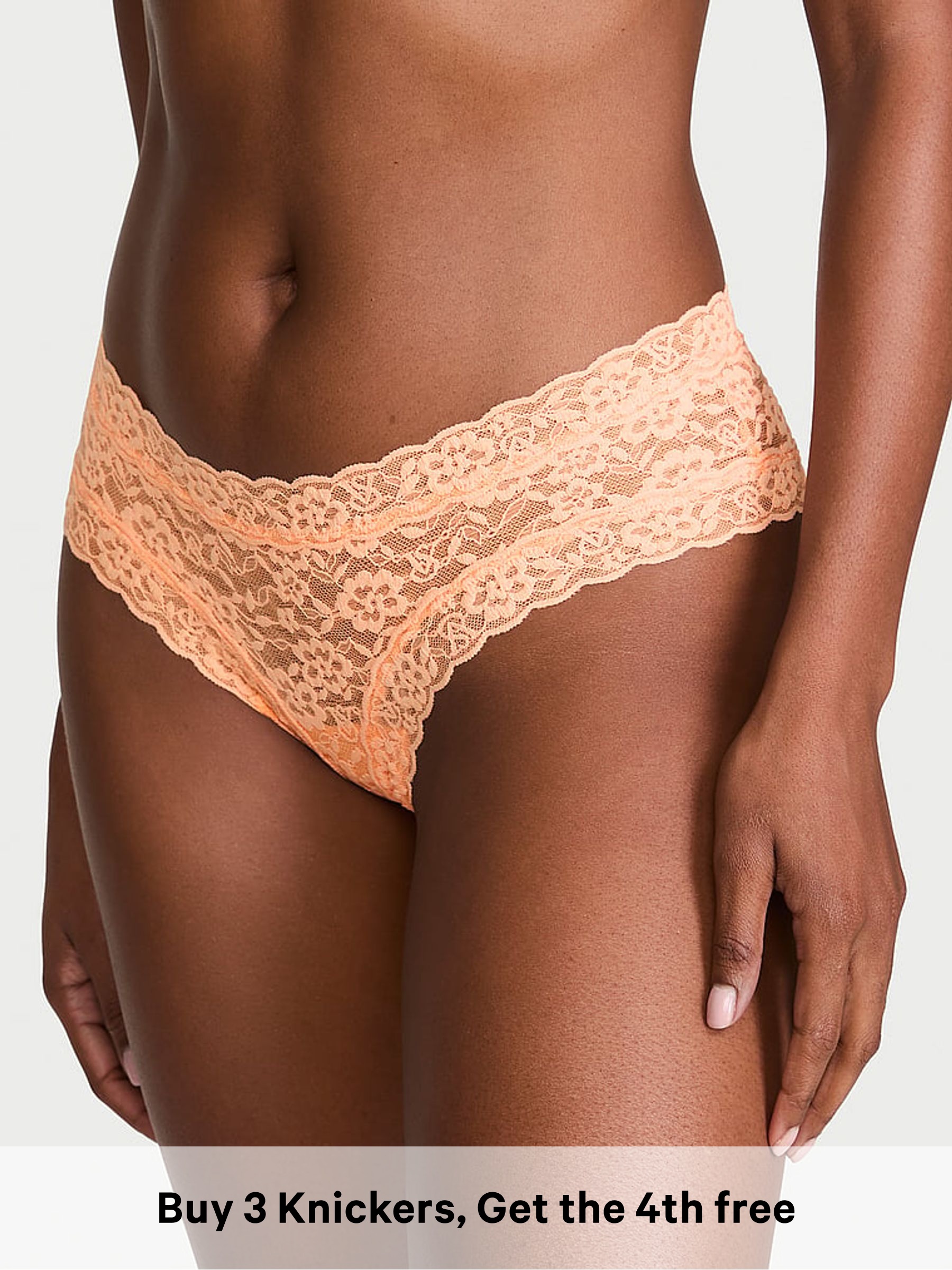 Orange Star Print Thong No Show Lace Trim Knickers