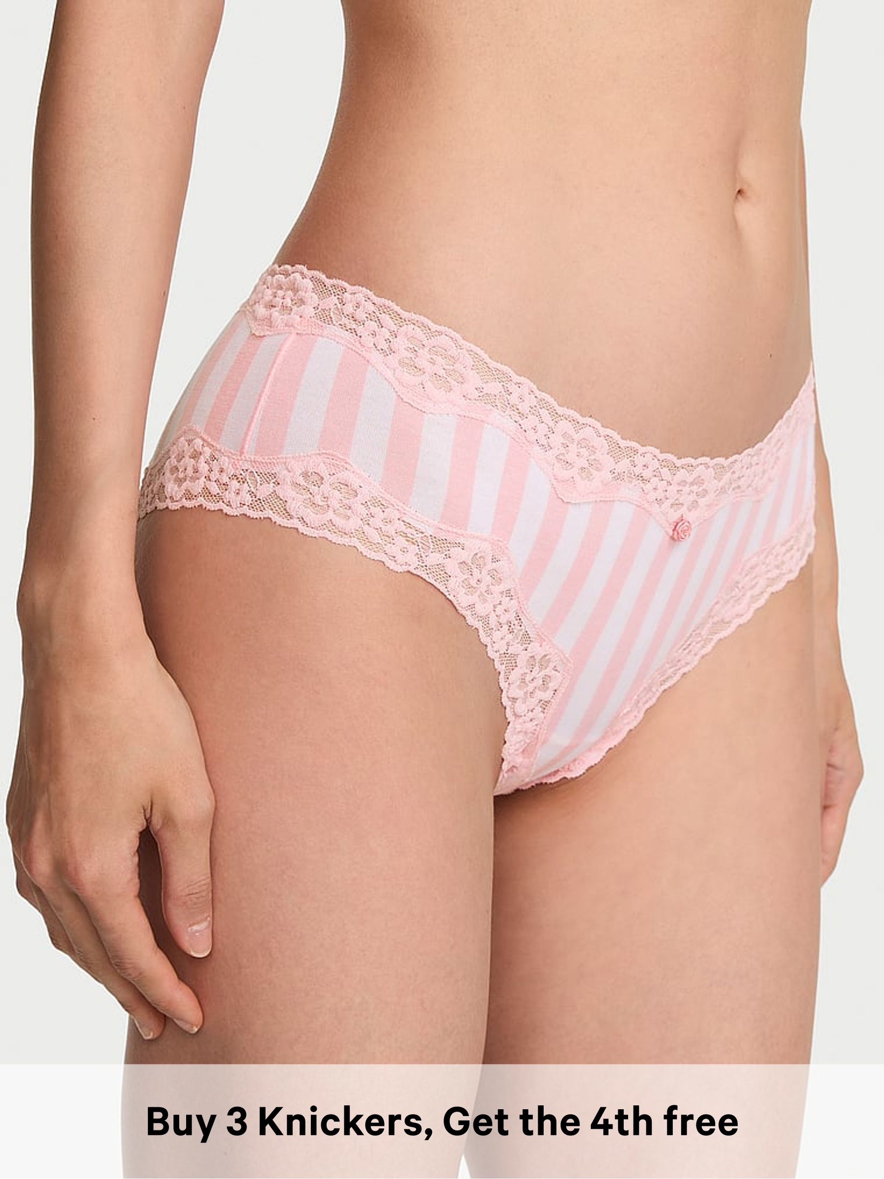 Pretty Blossom Pink Stripes Cheeky Cotton Lace Waist Knickers