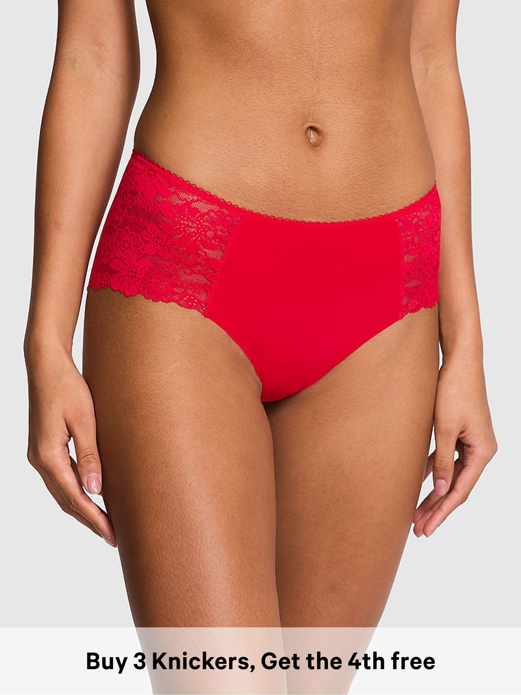 Lipstick Red Cheeky Rose Lace Trim Knickers