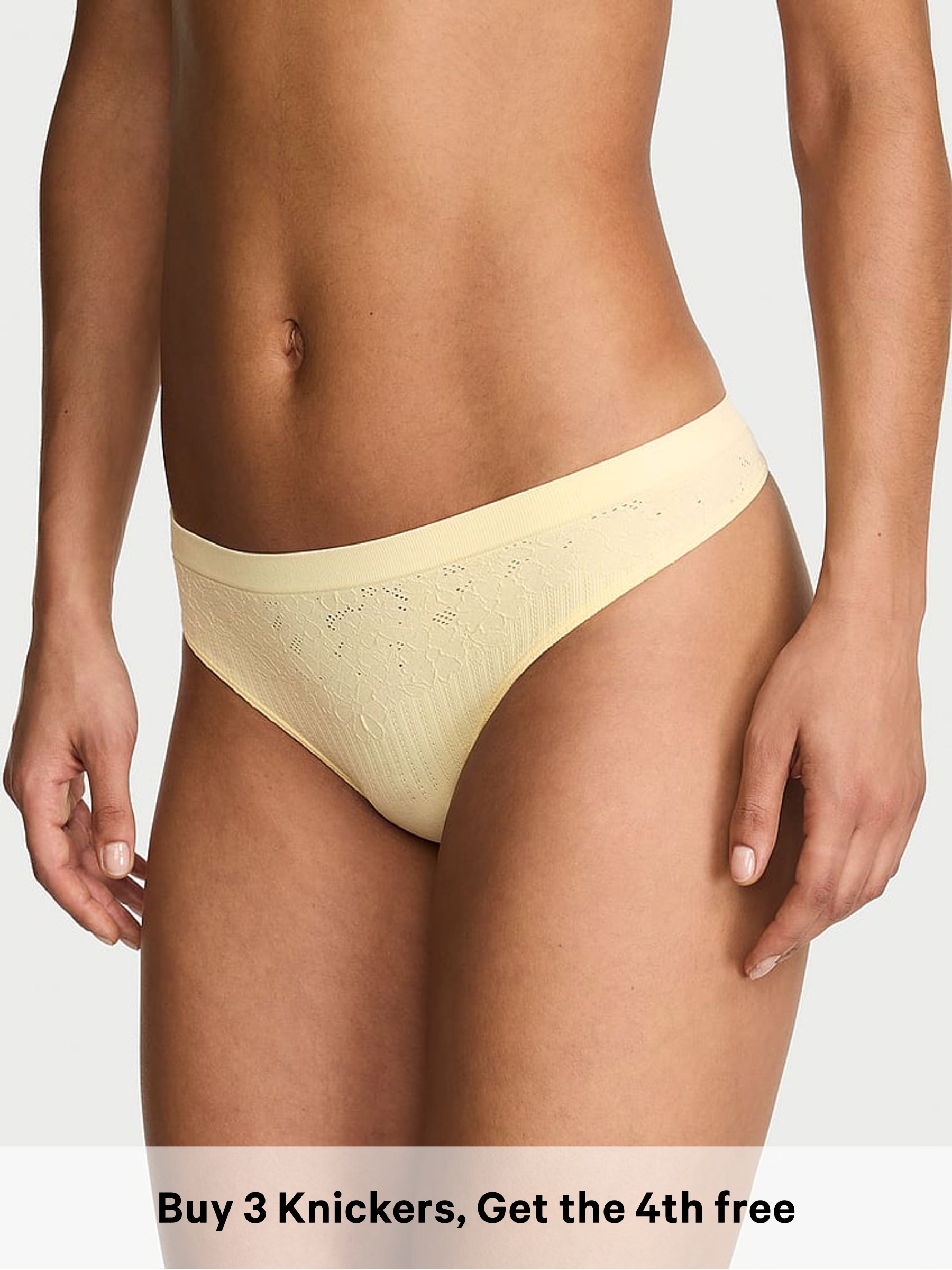 Sunny Honey Yellow Thong Floral Ribbed Knickers