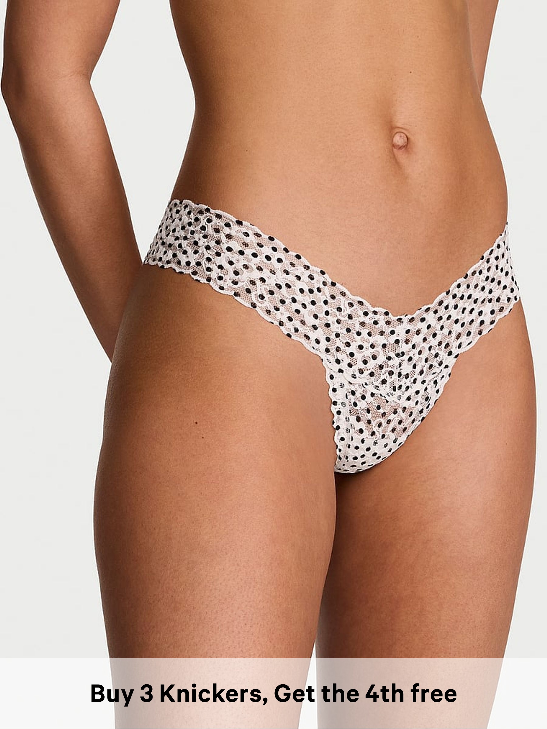 Black Dots Thong Lace Trim Knickers