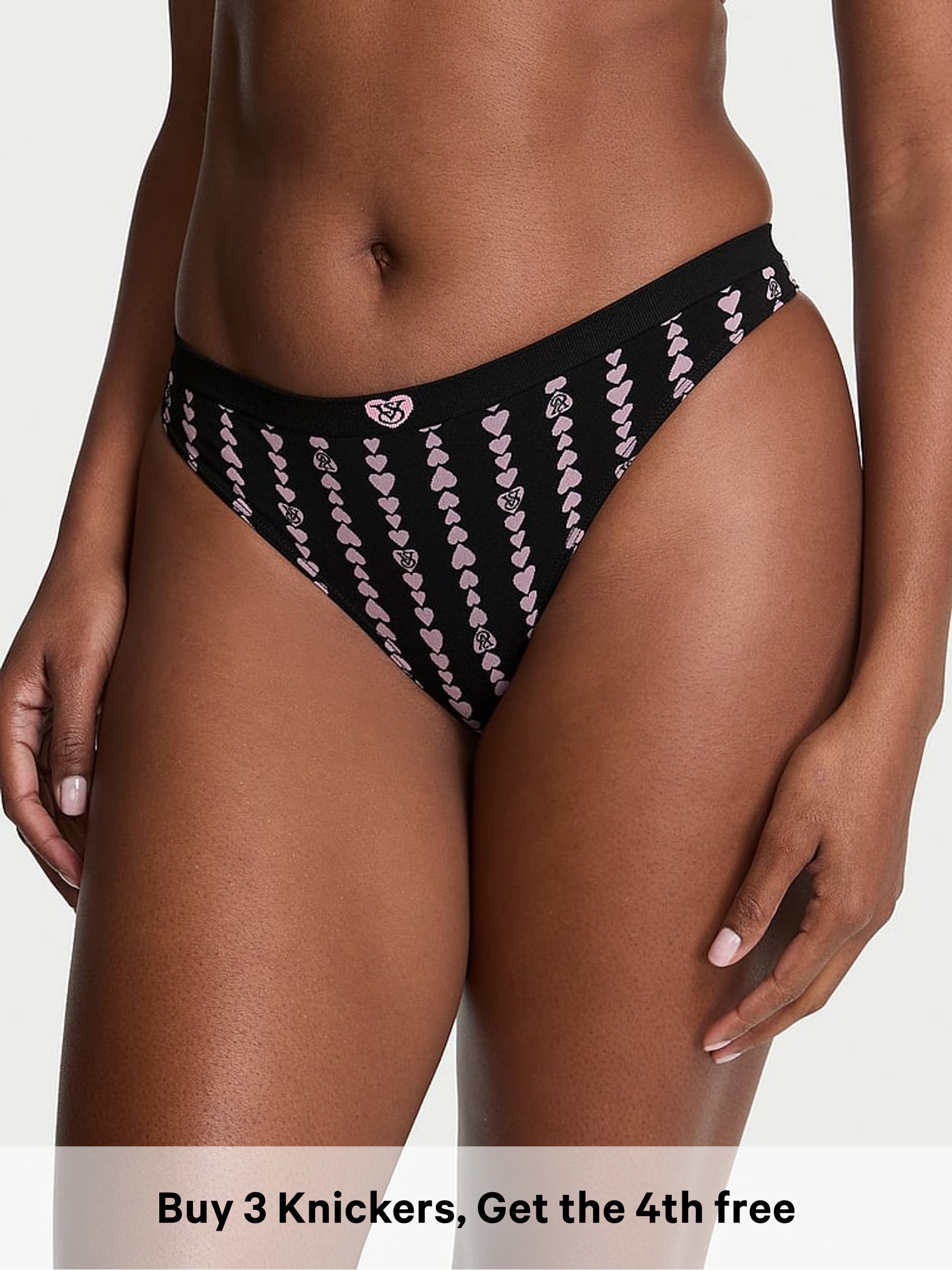 Black Thong Heart Stripe Knickers