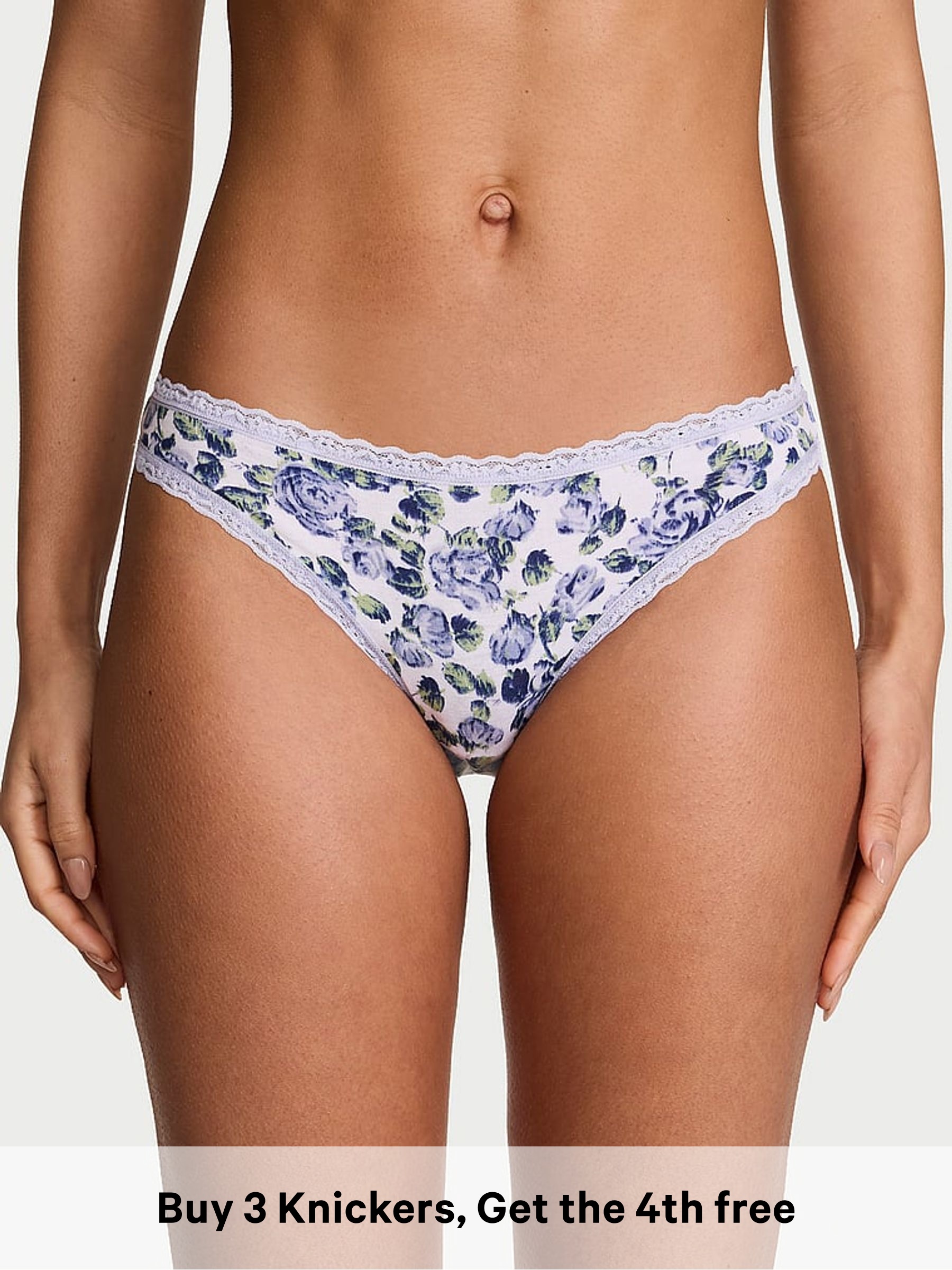 Icy Lavender Purple Floral Cotton Lace Trim Bikini Trim Knickers