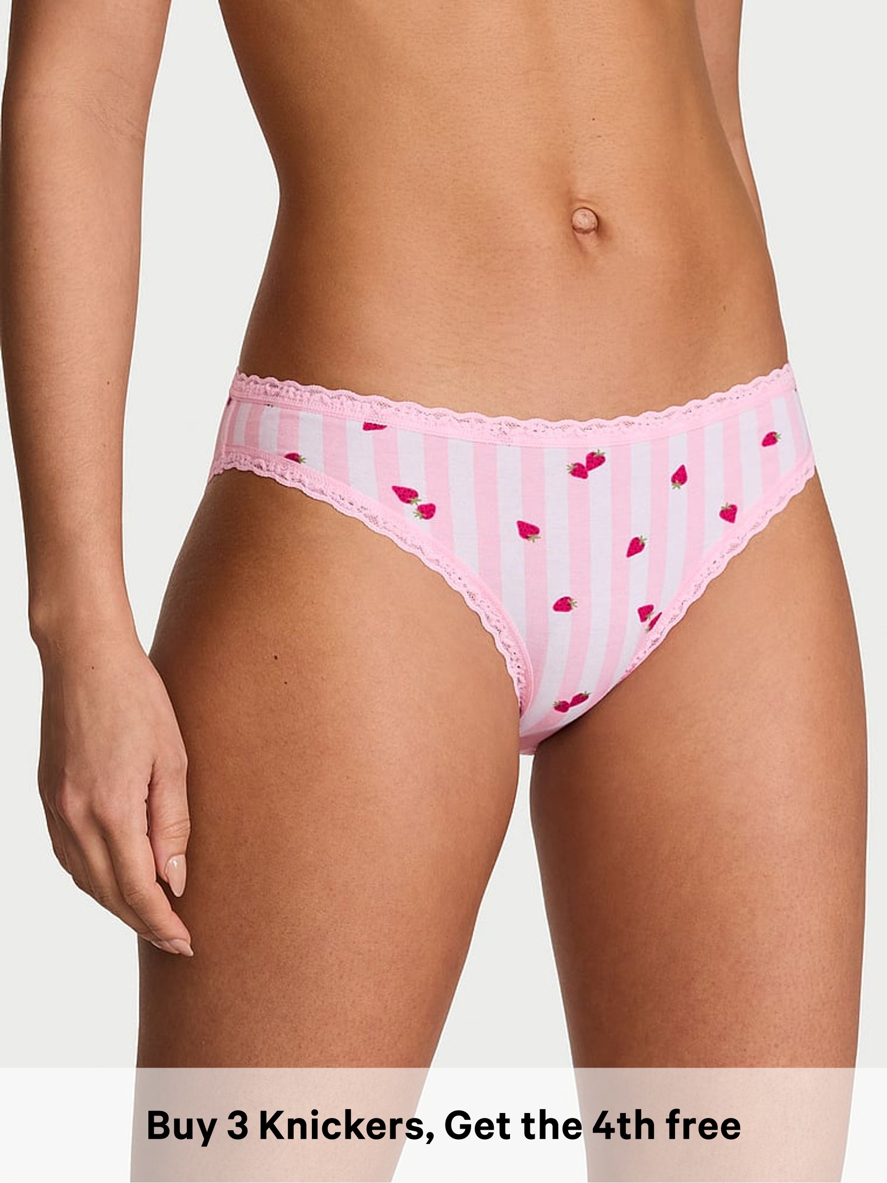 Pretty Bossom Pink Strawberry Cotton Lace Trim Bikini Trim Knickers