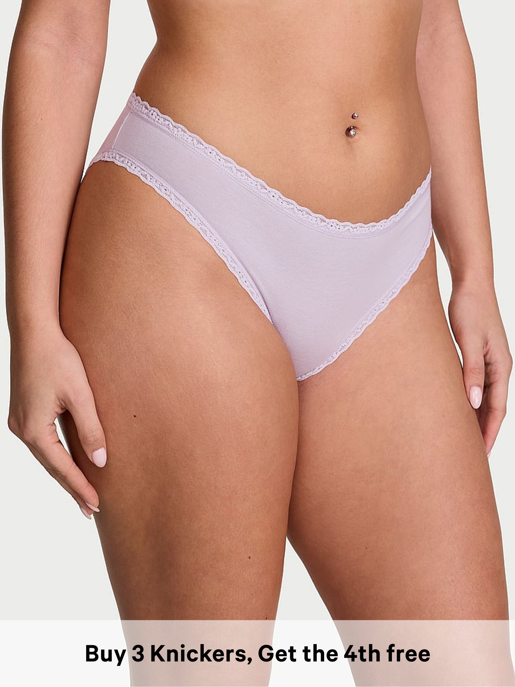 Crystal Lilac Purple Bikini Cotton Lace Trim Knickers
