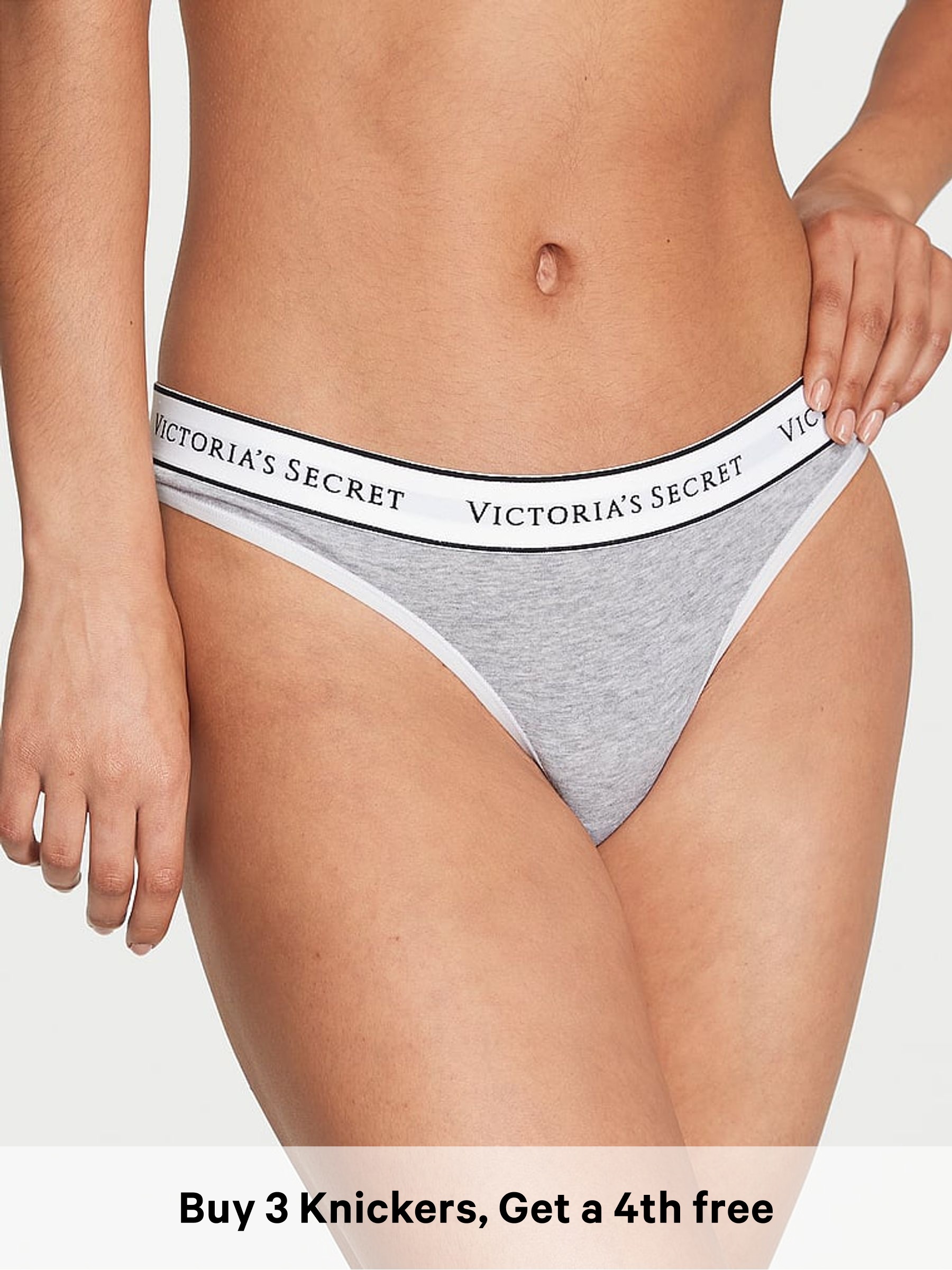 Medium Heather Grey Thong Logo 4 Pack Knickers