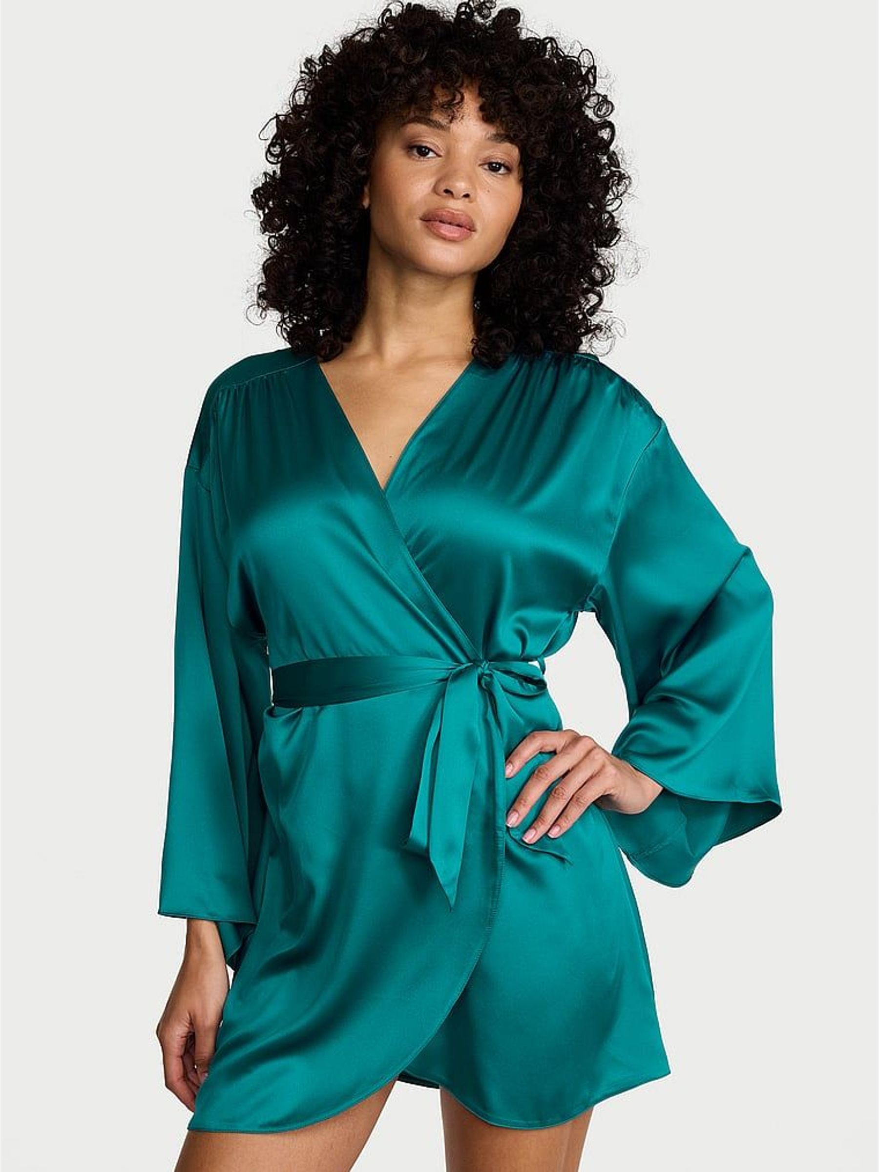 True Teal Blue Satin Short Robe