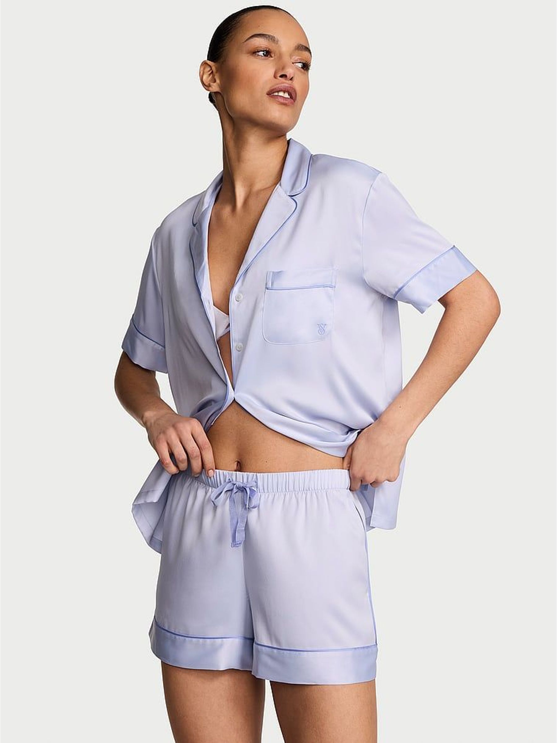 Icy Lavender Purple Satin Short Pyjamas Set