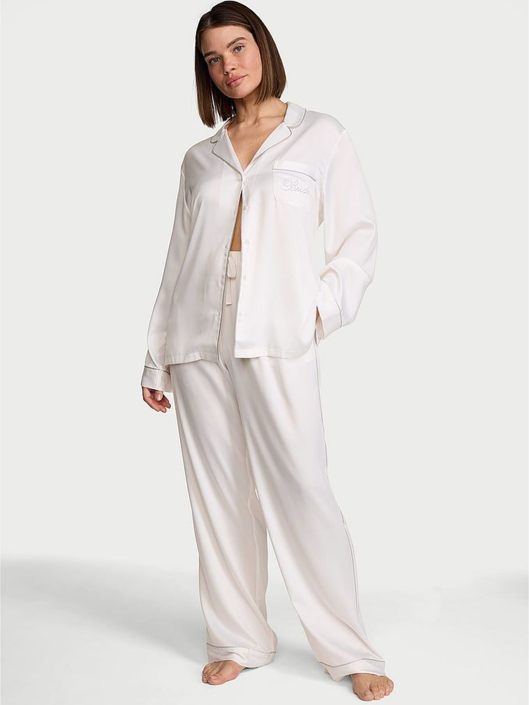 White Bridal Satin Long Pyjamas Set