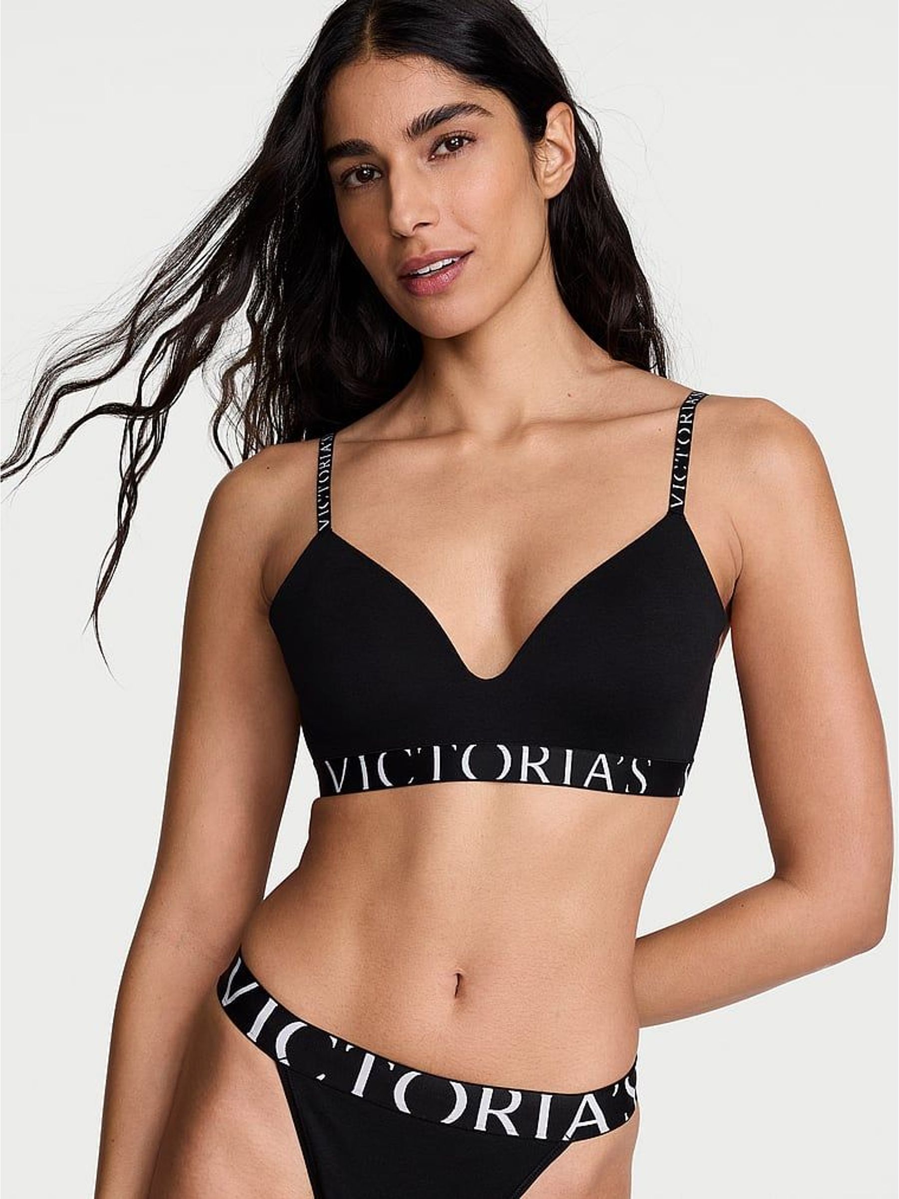 Black Lightly Lined Non Wired Cotton Exploded Logo Bra