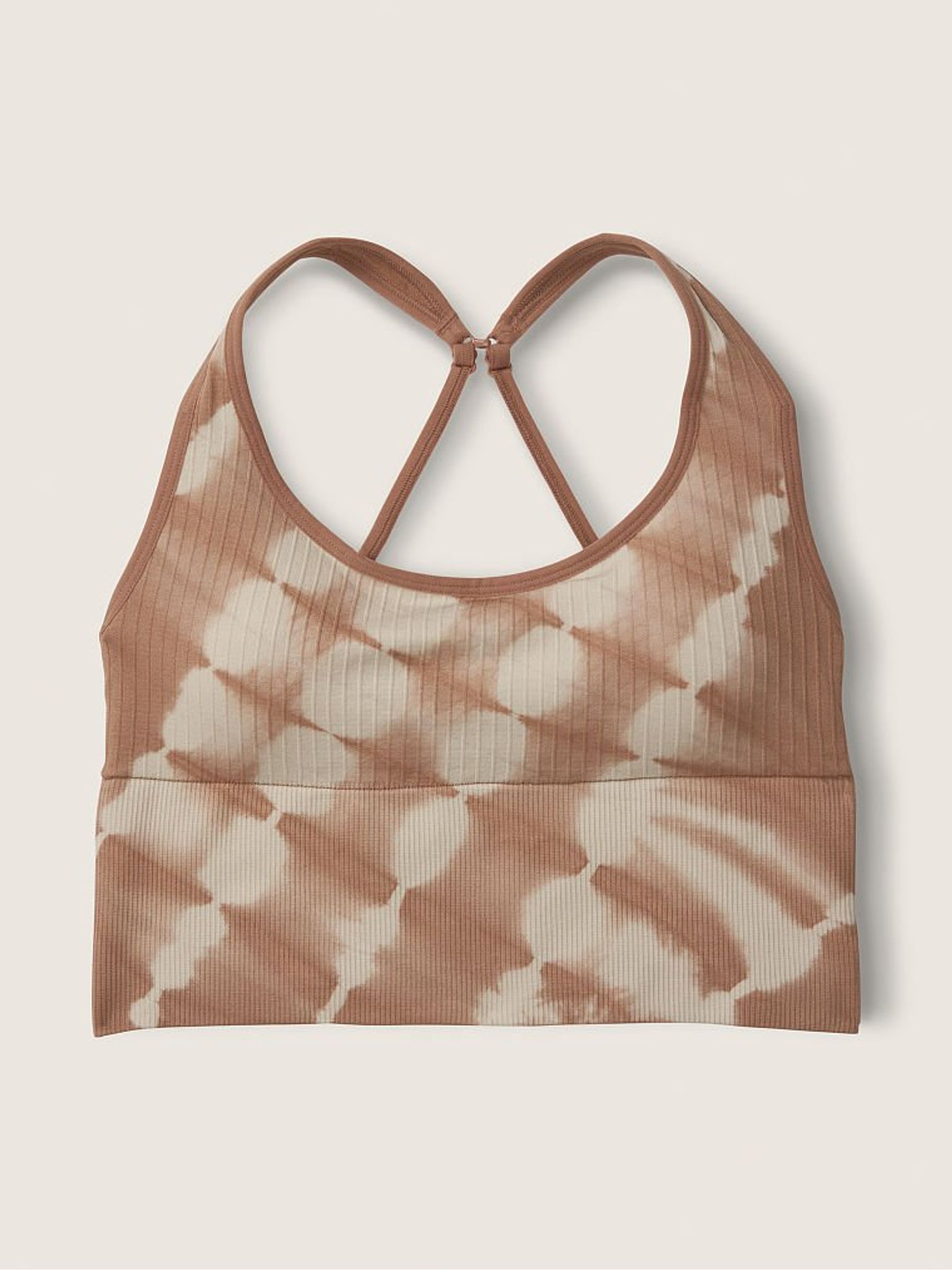 Lightly-lined, wireless. Removable padding. Pull-on style. Seamless fabrication. Adjustable convertible back straps. Low impact, 4-way stretch, seamless comfort, breathable fabric.
