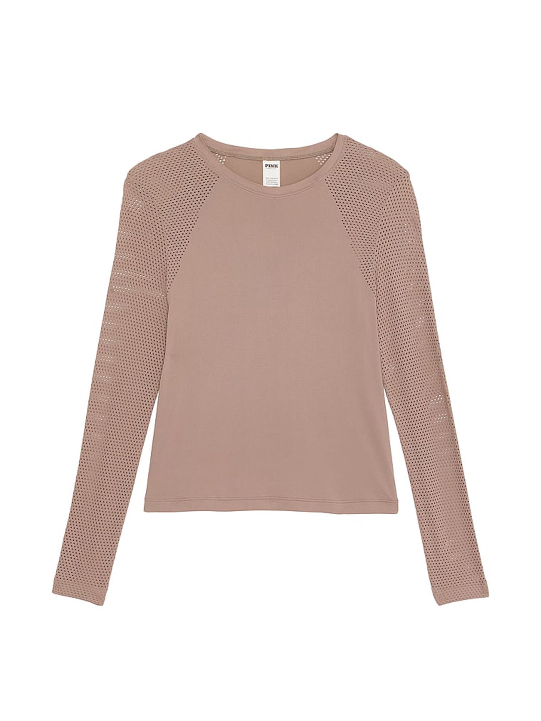 The Takeaway: An easy, breathable pull-on layer. Wear it, pack it, love it. This comfy active top is ready for anything. Perforations for airflow. Crewneck. Long sleeve.